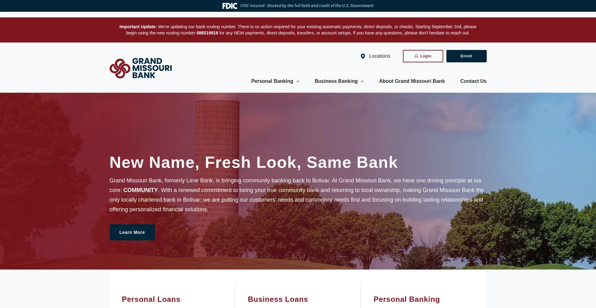 Grand Missouri Bank provides technology-forward and customer-focused personal and business banking options with four locations in Southwest Missouri.