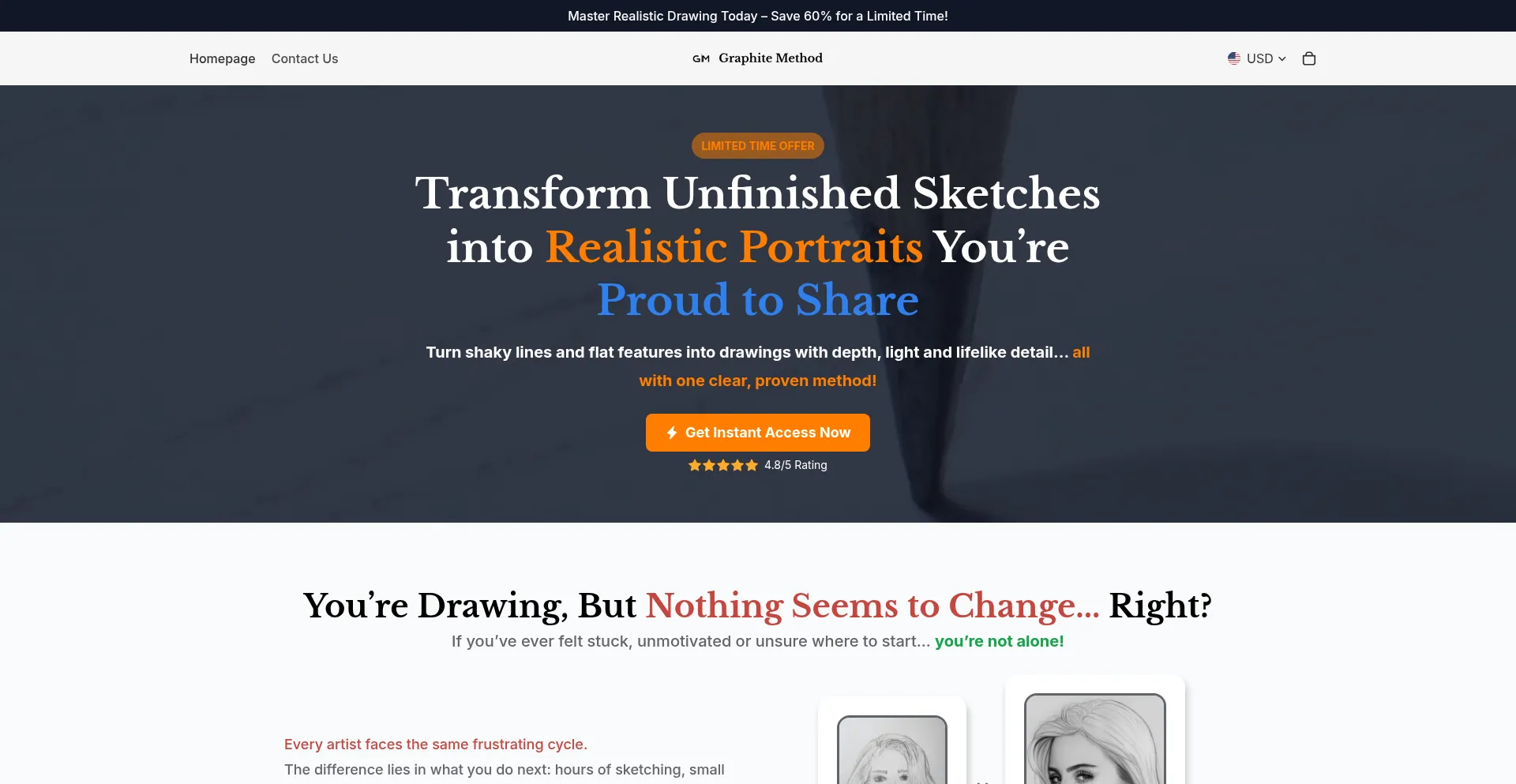 Master realistic portrait and figure drawing with the Complete Graphite Method Bundle: a 9-chapter digital guide that simplifies anatomy, shading and proportions. Instant downlo...