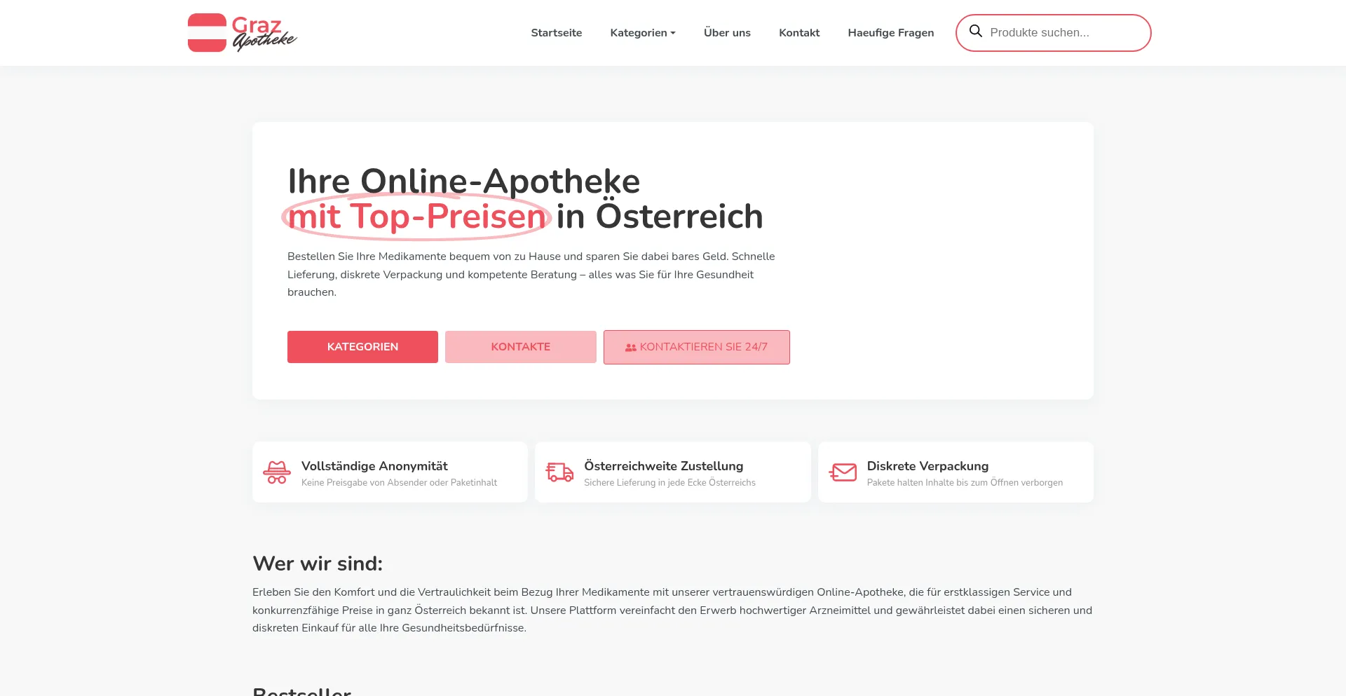 Graz Apotheke ist eine Online-Apotheke in Österreich, die hochwertige Medikamente, schnelle und diskrete bundesweite Lieferung sowie kompetente Beratung garantiert. Ihre Gesund...