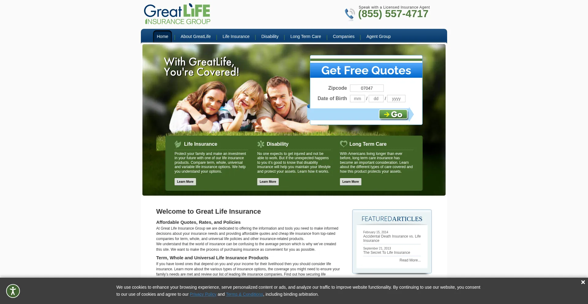 该网站实现符合GDPR或CCPA等隐私法规的cookie同意机制。这表明 greatlifeinsurancegroup.com 遵守数据保护标准并为用户提供对个人数据收集实践的控制。