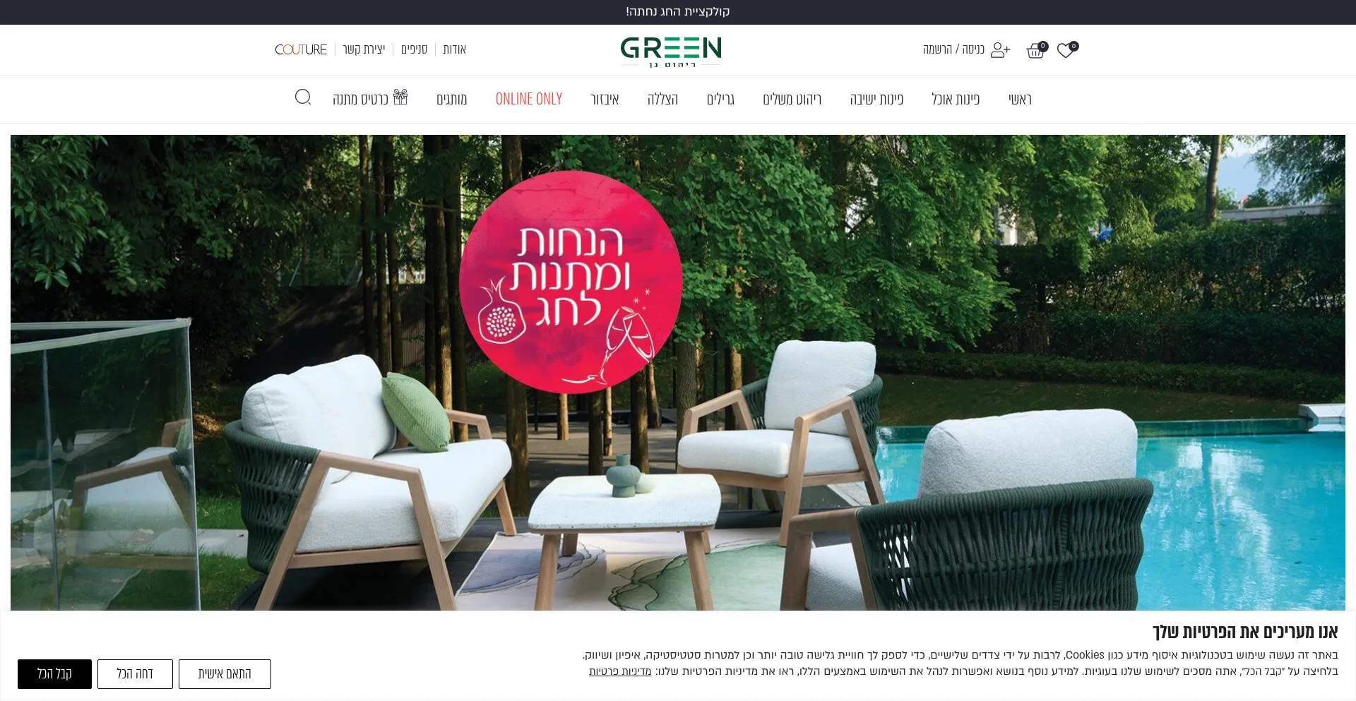 גרין רשת חנויות ריהוט גן הגדולה בישראל עם מבחר מוצרים כגון: פינות ישיבה מאלומיניום ועץ, שמשיות, גר...