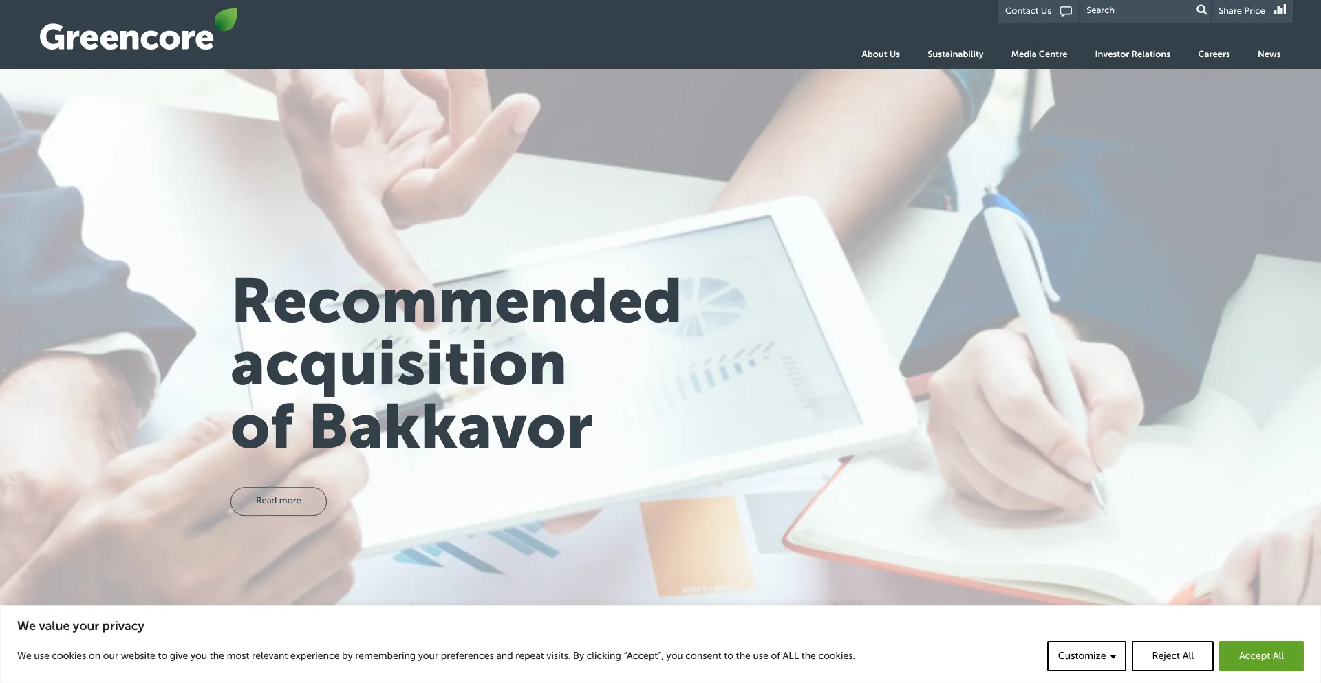 该网站实现符合GDPR或CCPA等隐私法规的cookie同意机制。这表明 greencore.com 遵守数据保护标准并为用户提供对个人数据收集实践的控制。