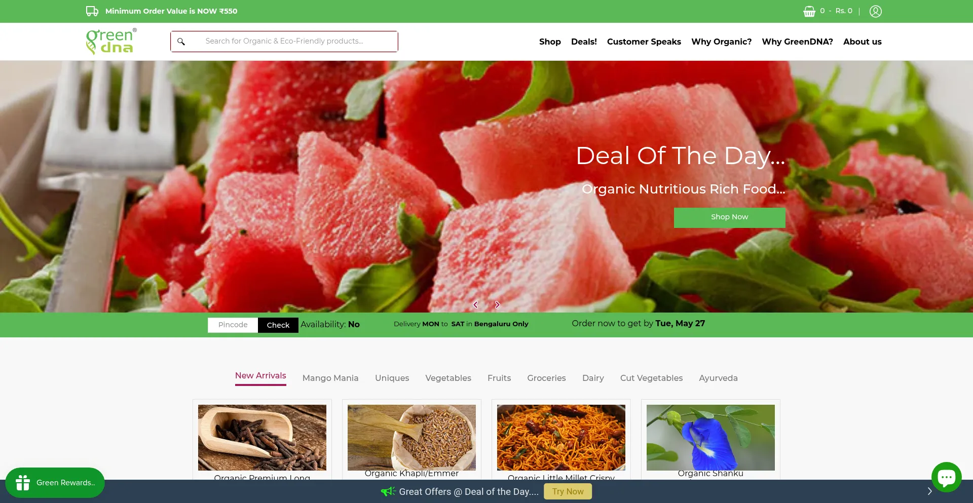 Bengaluru’s trusted e-Store, Delivers high quality, Fresh, Nutritious, Organic Certified Fruits, Vegetables and Groceries. Our Green ethos emphasizing recycling, No Plastics, ...