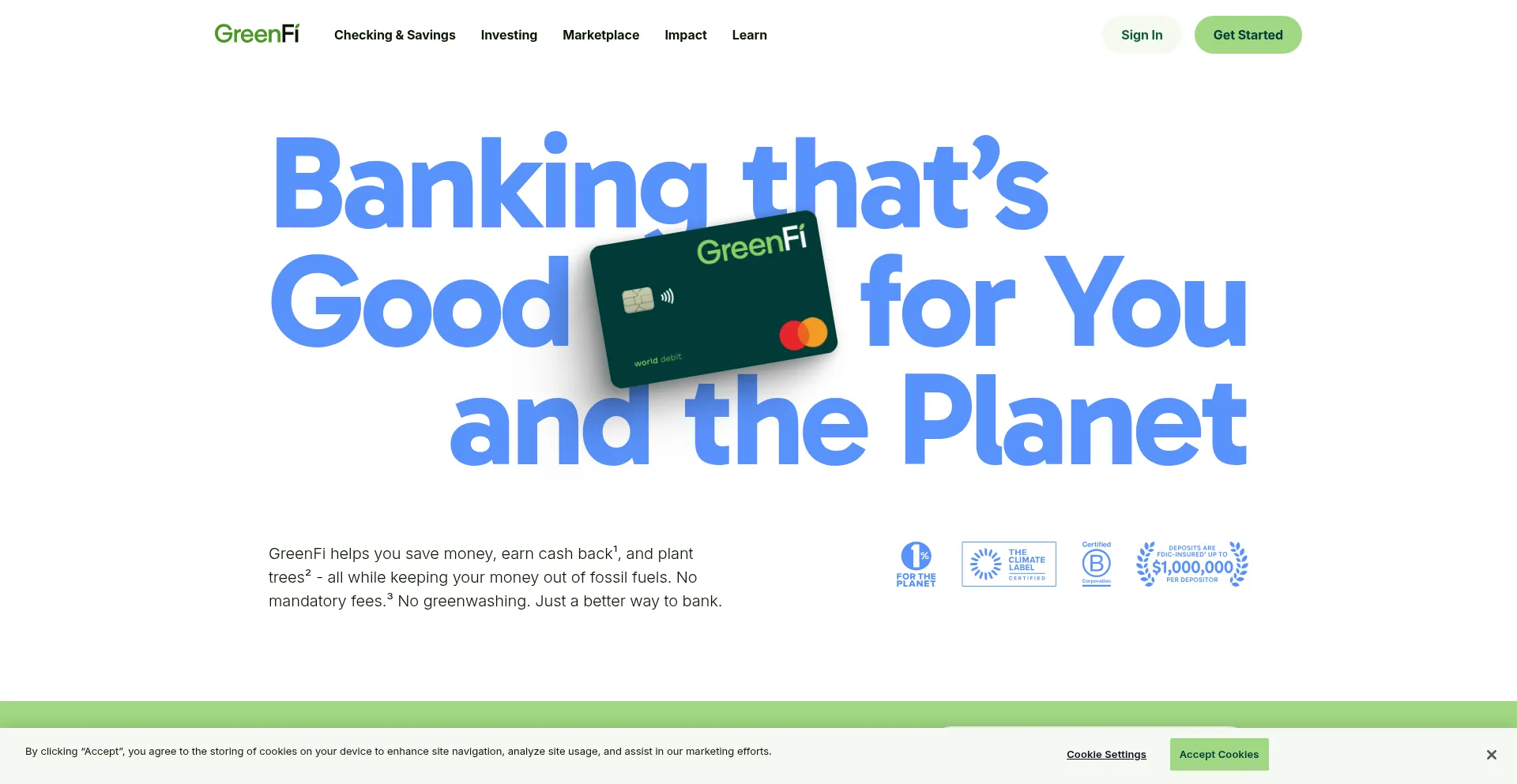 GreenFi - The climate-friendly banking app. Green checking, savings, and investment accounts