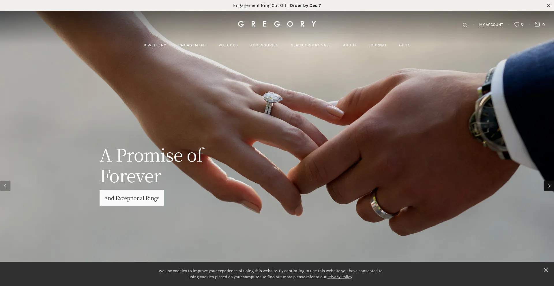 该网站实现符合GDPR或CCPA等隐私法规的cookie同意机制。这表明 gregoryjewellers.com.au 遵守数据保护标准并为用户提供对个人数据收集实践的控制。