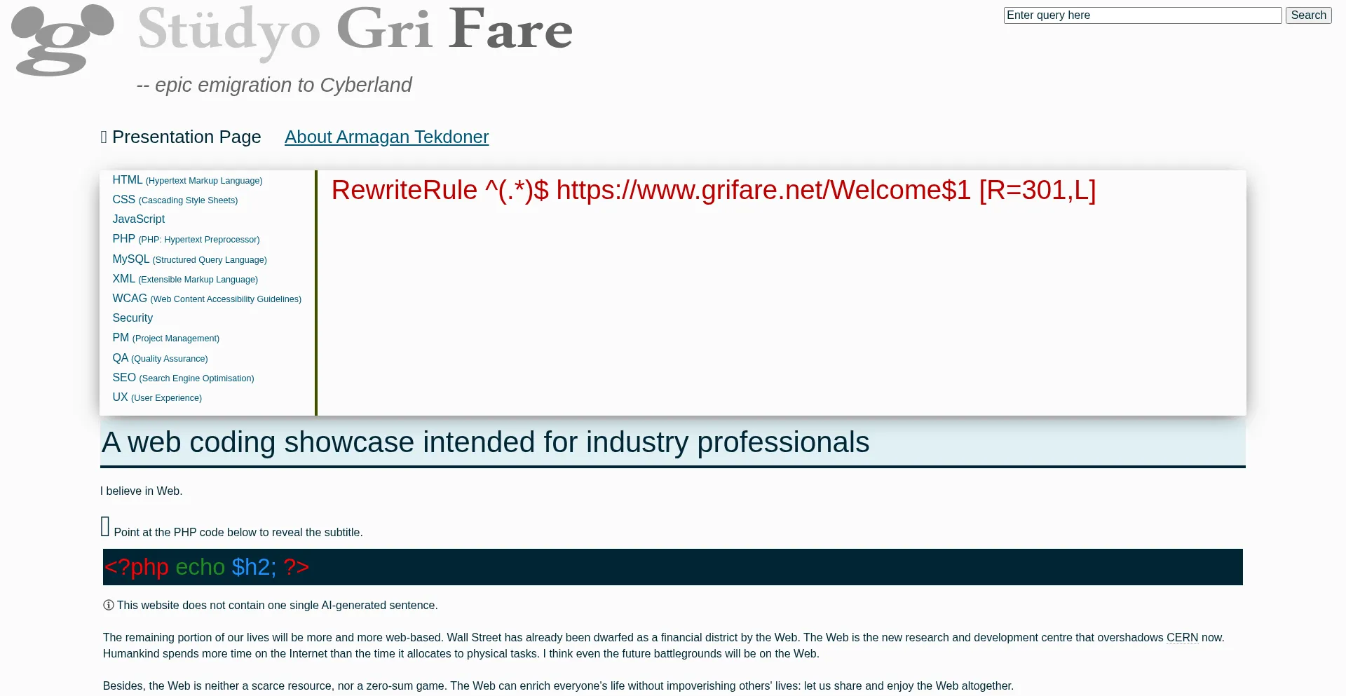 A Web Coding Showcase - Armagan TEKDONER | Studio Gri Fare