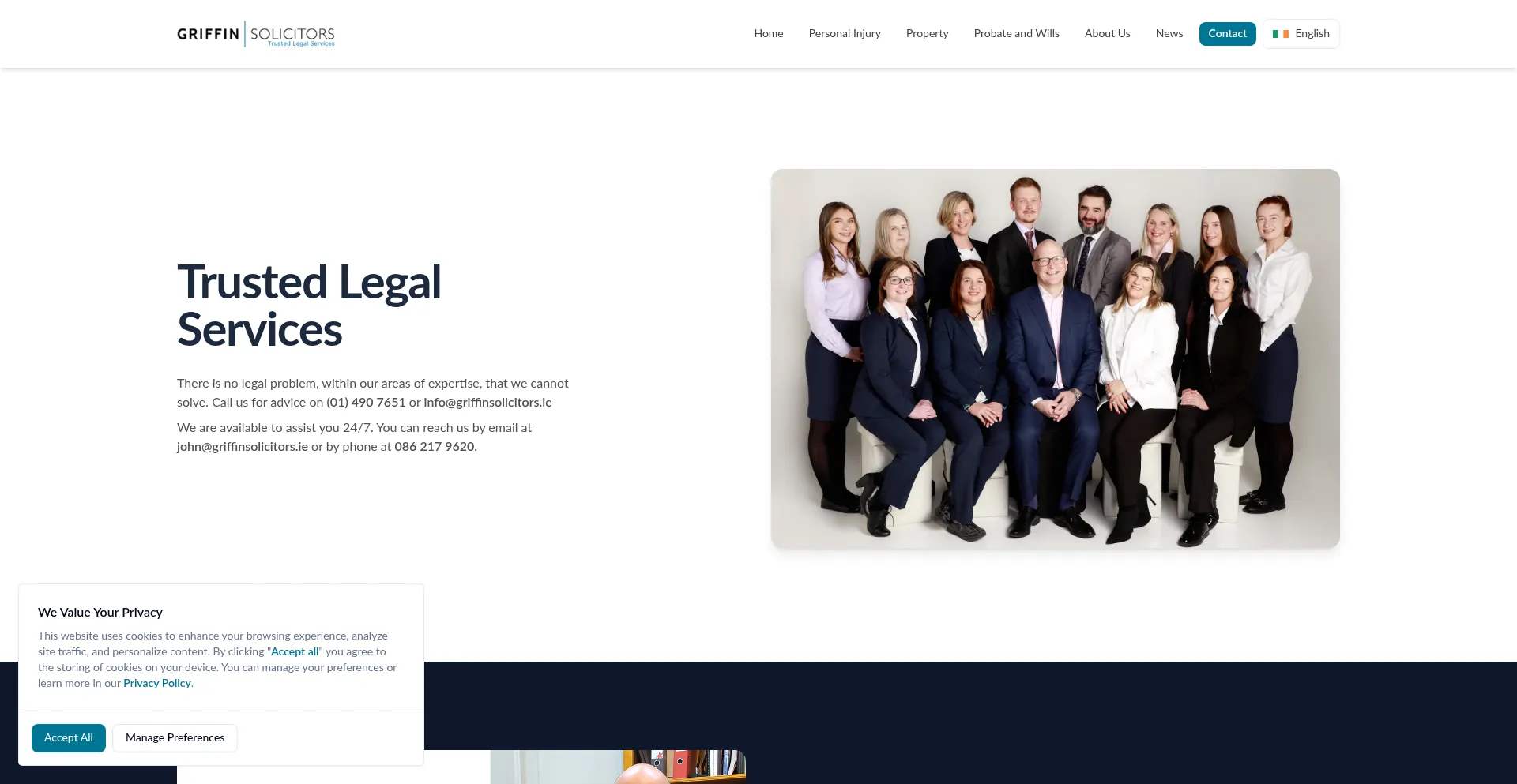 网站上存在社交媒体链接表明 griffinsolicitors.ie 在社交媒体上维护官方账户,这是可信度和参与度的积极信号。