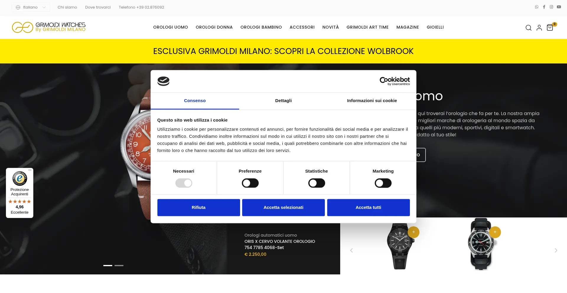 该网站实现符合GDPR或CCPA等隐私法规的cookie同意机制。这表明 grimoldiwatches.com 遵守数据保护标准并为用户提供对个人数据收集实践的控制。
