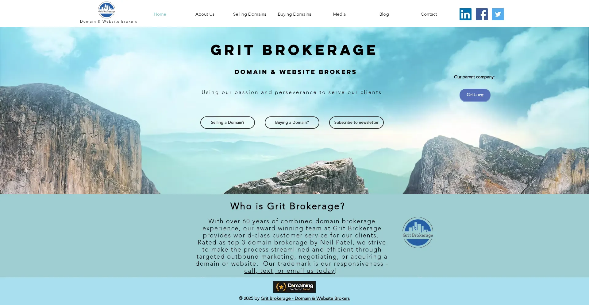 Grit Brokerage is a leading domain brokerage service. Grit buys, sells, and brokers premium domain names for clients, with millions in domain sales to date.