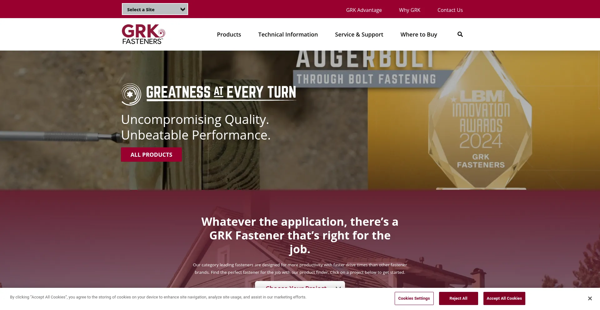 该网站实现符合GDPR或CCPA等隐私法规的cookie同意机制。这表明 grkfasteners.com 遵守数据保护标准并为用户提供对个人数据收集实践的控制。