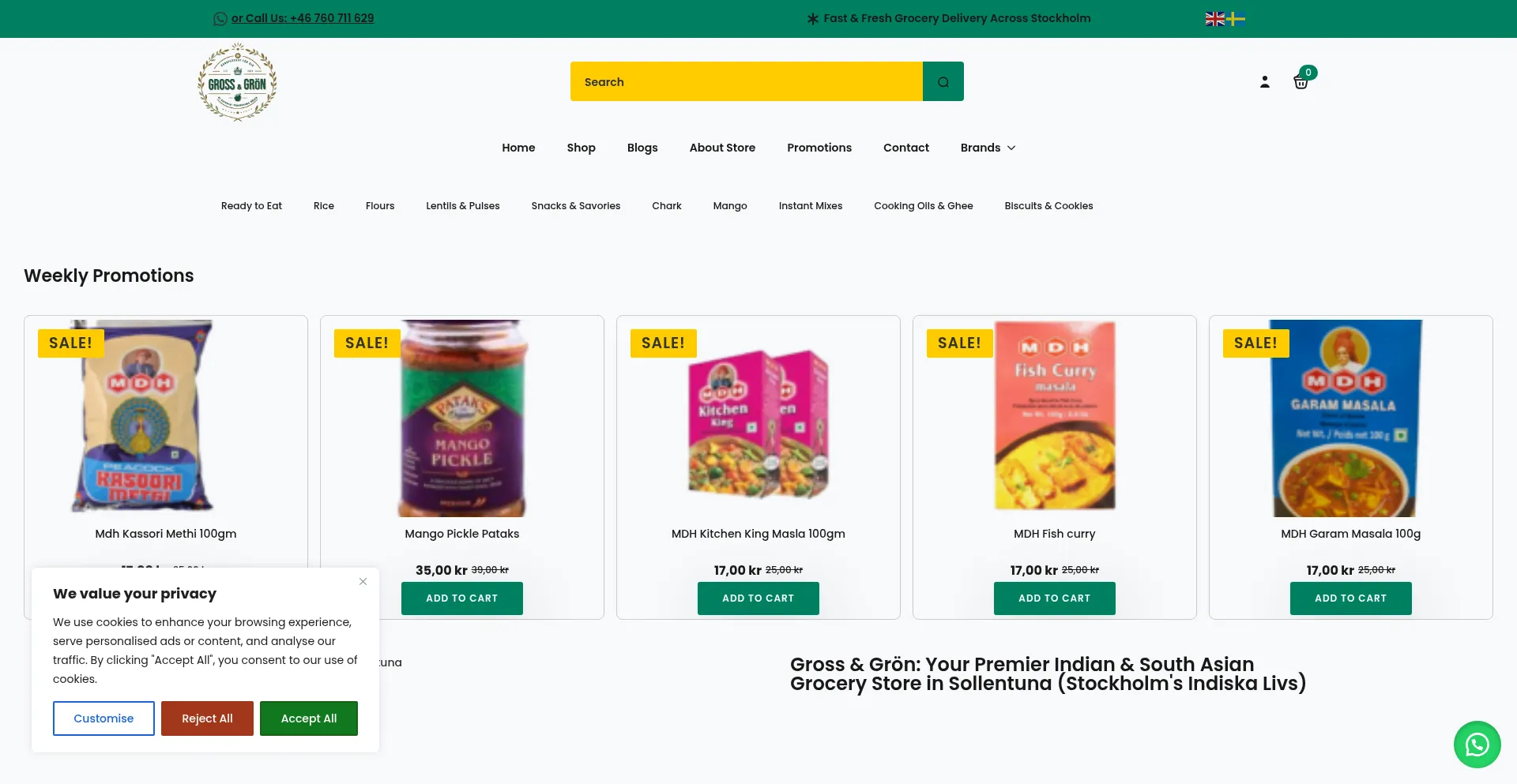 At Gross & Grön, we bring you the best South Asian groceries in Stockholm, including authentic Indian spices, fresh produce, and frozen foods.