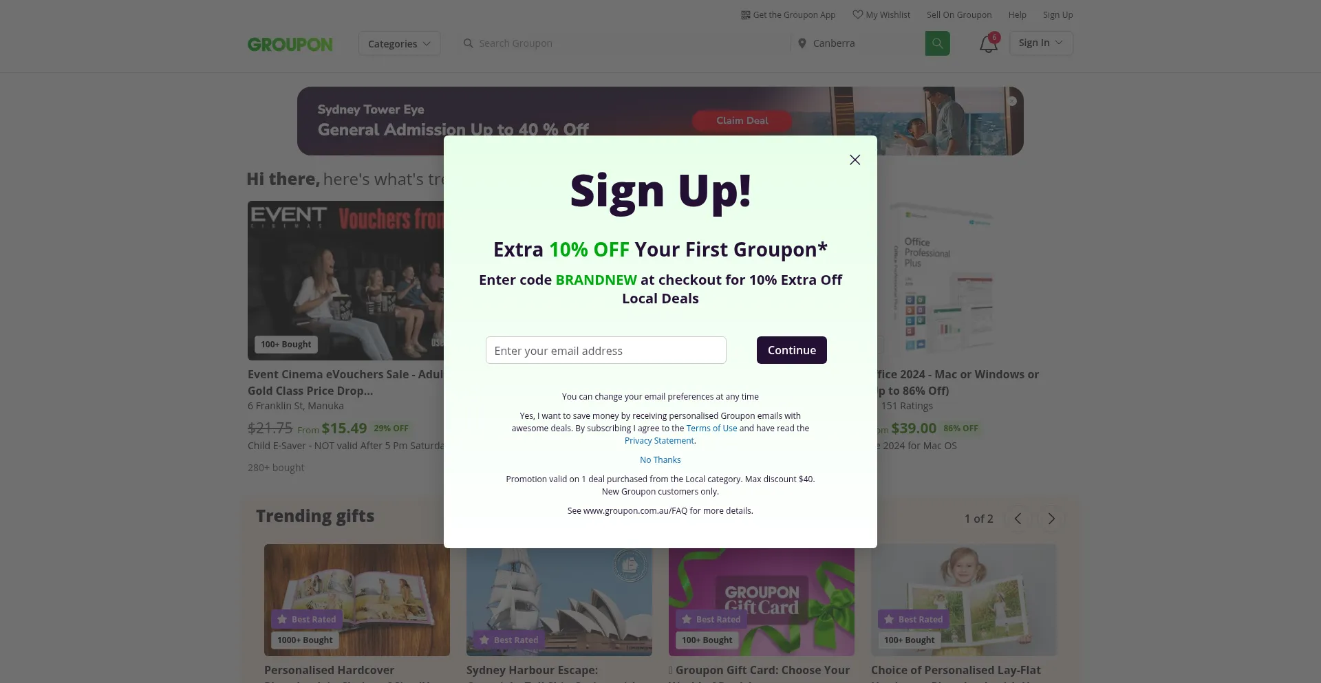 该网站实现数据收集表单,请求个人信息,包括姓名、电子邮件地址、电话号码或其他敏感详细信息。用户应验证 grouponnz.co.nz 的合法性并在提交个人数据前查看隐私政策。