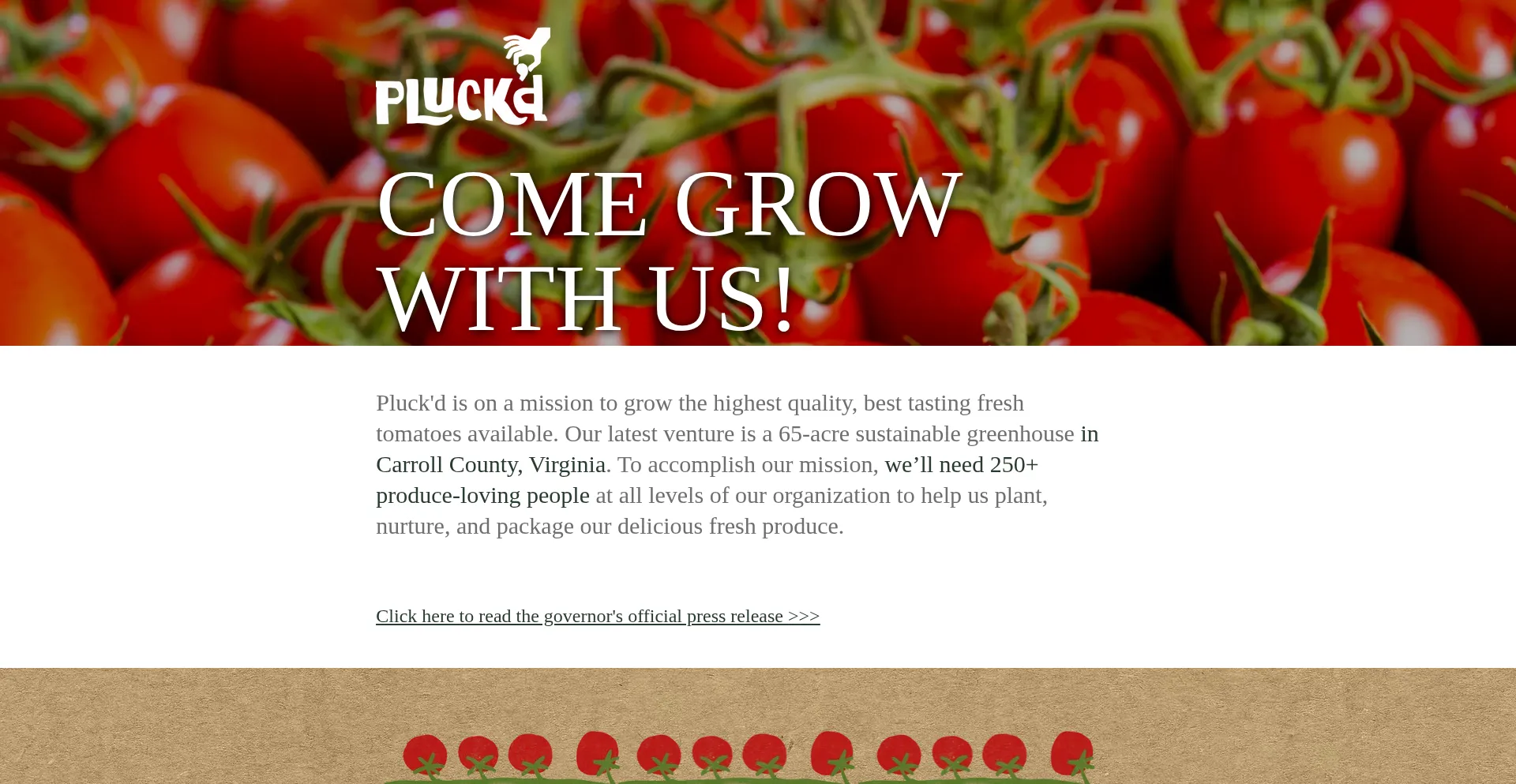 Pluck'd is on a mission to grow the highest quality, best tasting fresh produce available. Our latest venture is a 65-acre sustainable greenhouse in Carroll County, Virginia. To...