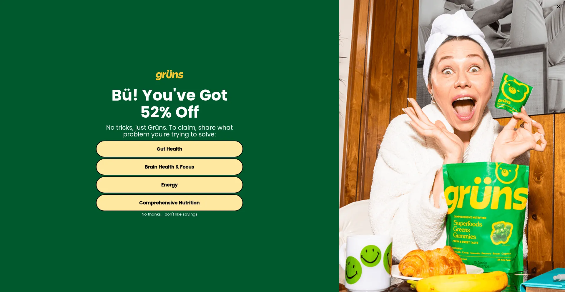 Grüns fills the nutrition gaps you and 92% of people have. Grüns supports gut health, energy, immunity, recovery, beauty, and focus. Just one grab-and-go snack pack of gummies...