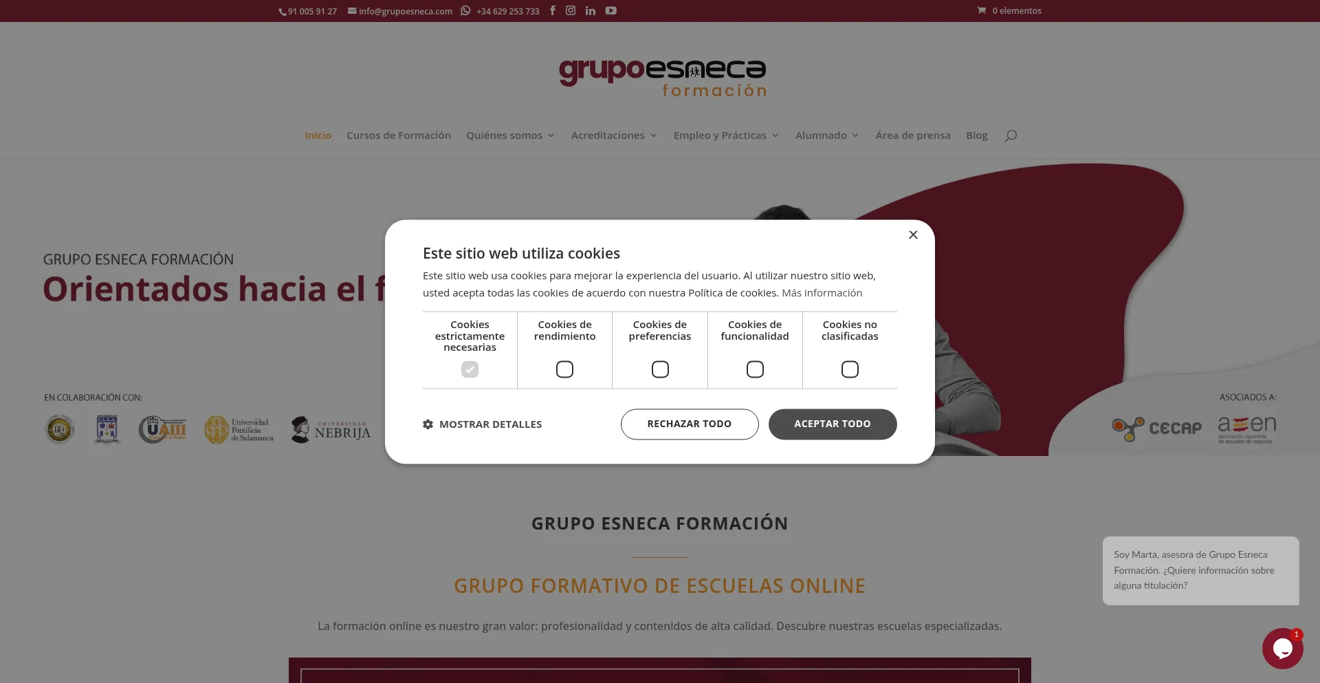 该网站实现符合GDPR或CCPA等隐私法规的cookie同意机制。这表明 grupoesneca.com 遵守数据保护标准并为用户提供对个人数据收集实践的控制。