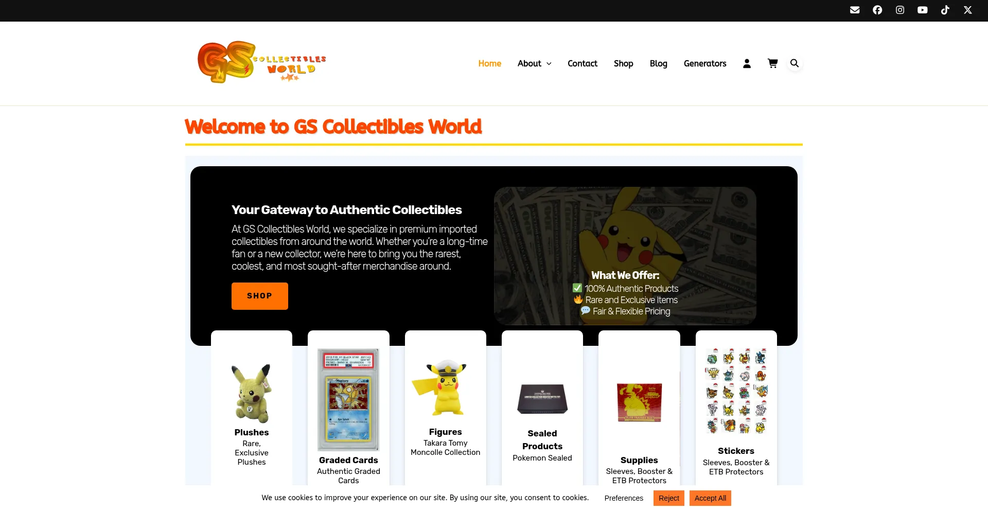 网站上存在社交媒体链接表明 gscollectiblesworld.com 在社交媒体上维护官方账户,这是可信度和参与度的积极信号。