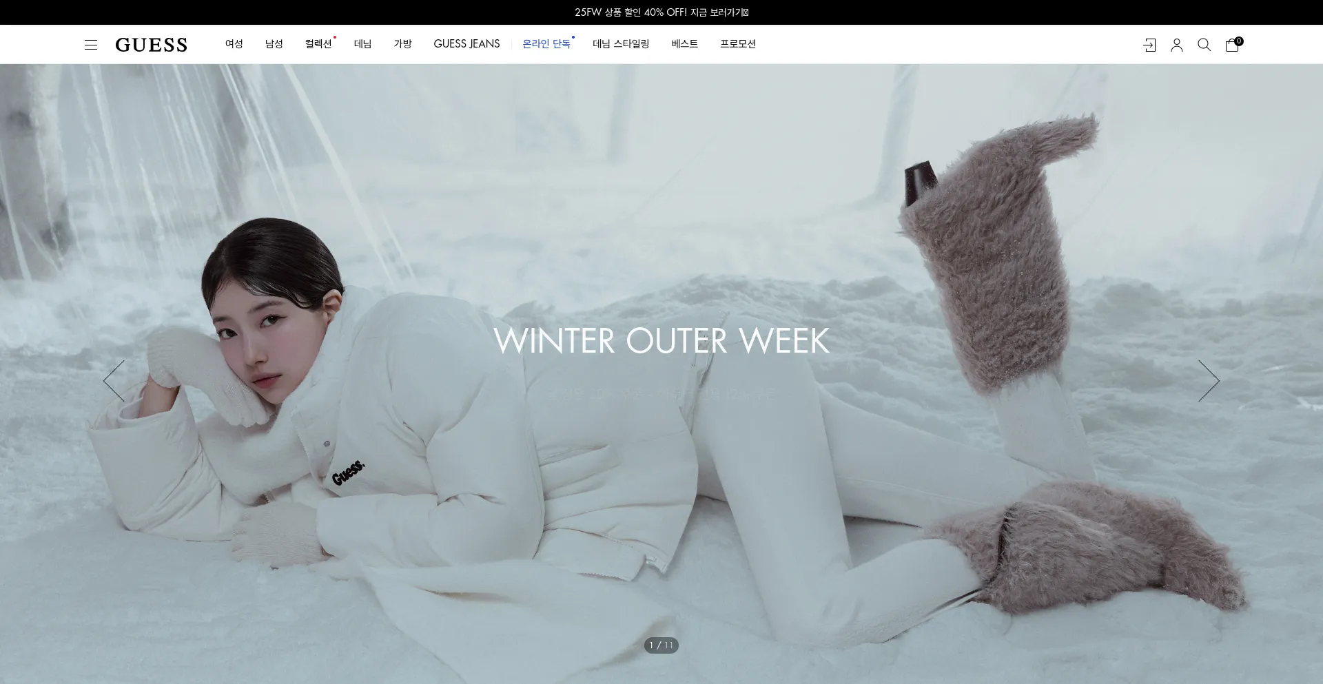 게스 공식 온라인 스토어. 남성&여성 의류, 데님, 백&액세서리 등 다양한 제품 라인 업을 온라인에서 만나보세요.