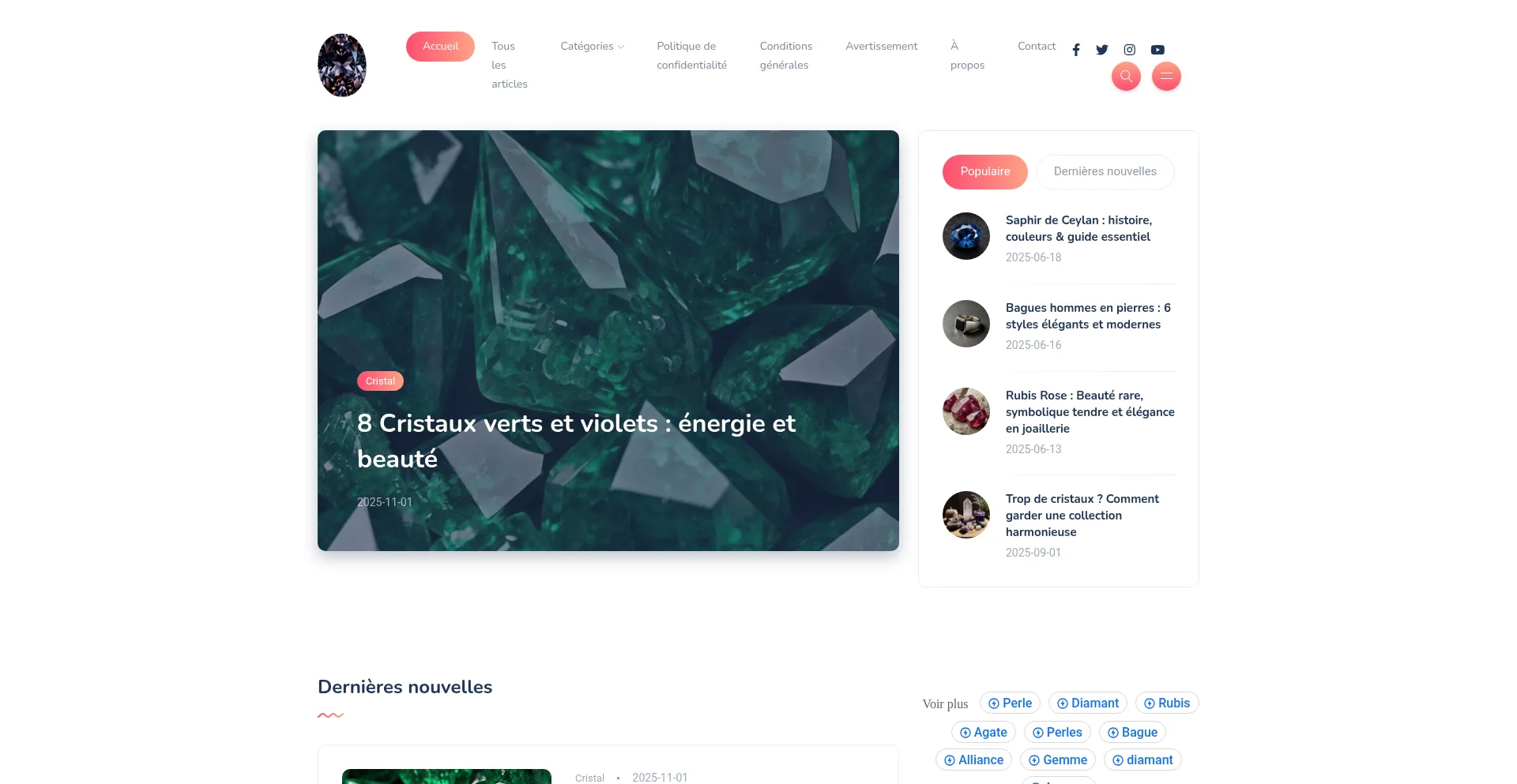 Découvrez un guide complet sur les pierres précieuses et gemmes : significations, vertus, conseils d’achat, entretien, lithothérapie et plus encore.