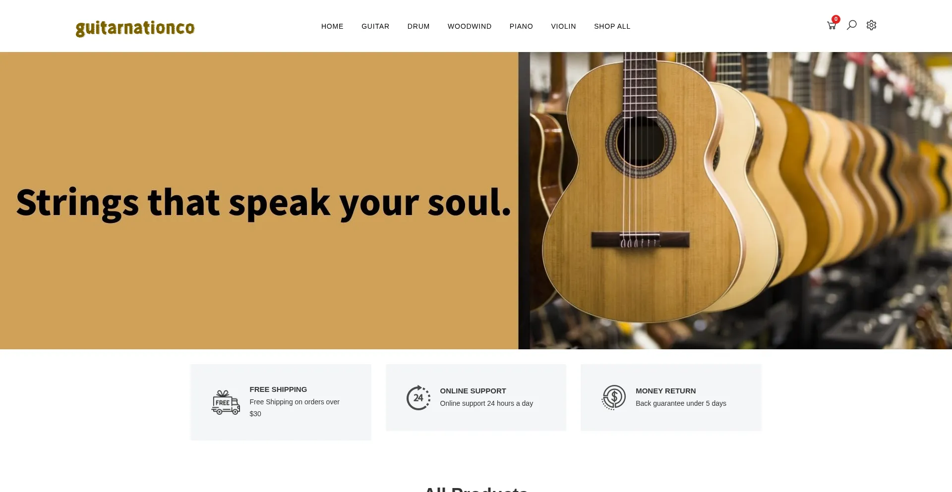 guitarnationco.com 使用 Bootstrap,这是一个广泛采用的开源响应式网页开发框架。Bootstrap 通过标准化组件和样式实现移动友好界面的高效创建。