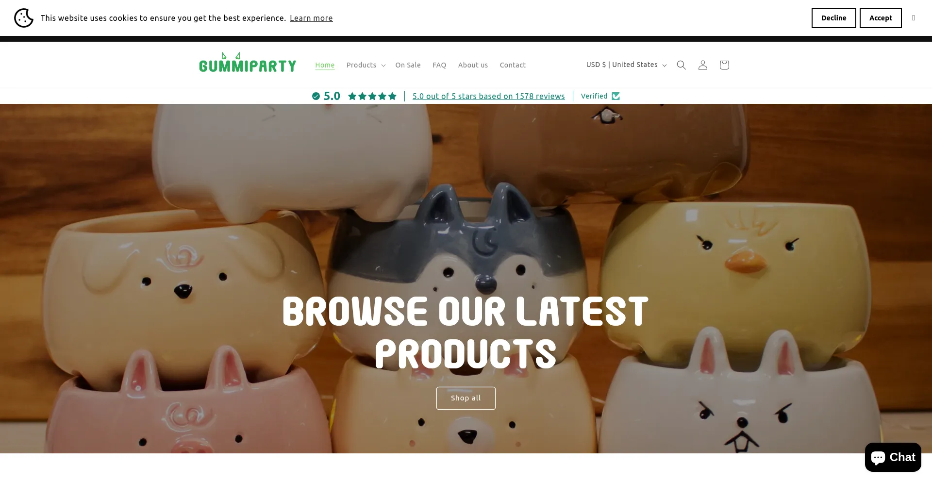 该网站实现符合GDPR或CCPA等隐私法规的cookie同意机制。这表明 gummiparty.com 遵守数据保护标准并为用户提供对个人数据收集实践的控制。