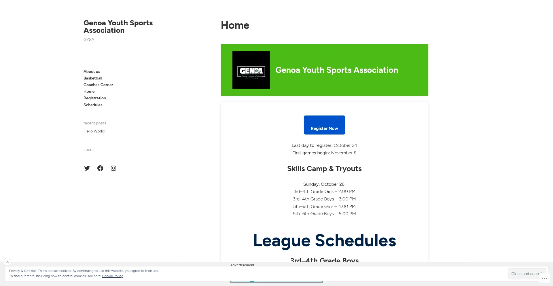 Genoa Youth Sports Association Register Now Last day to register: October 24 First games begin: November 8 Skills Camp & Tryouts Sunday, October 26: 3rd–4th Grade Girls – 2:...