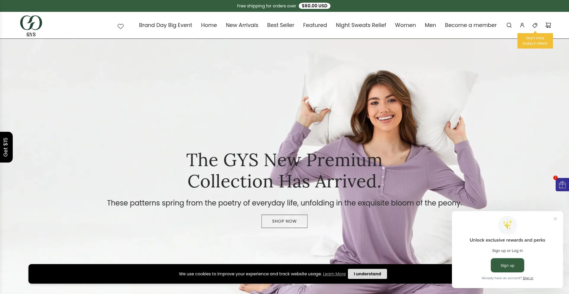 该网站实现符合GDPR或CCPA等隐私法规的cookie同意机制。这表明 gyspajamas.com 遵守数据保护标准并为用户提供对个人数据收集实践的控制。