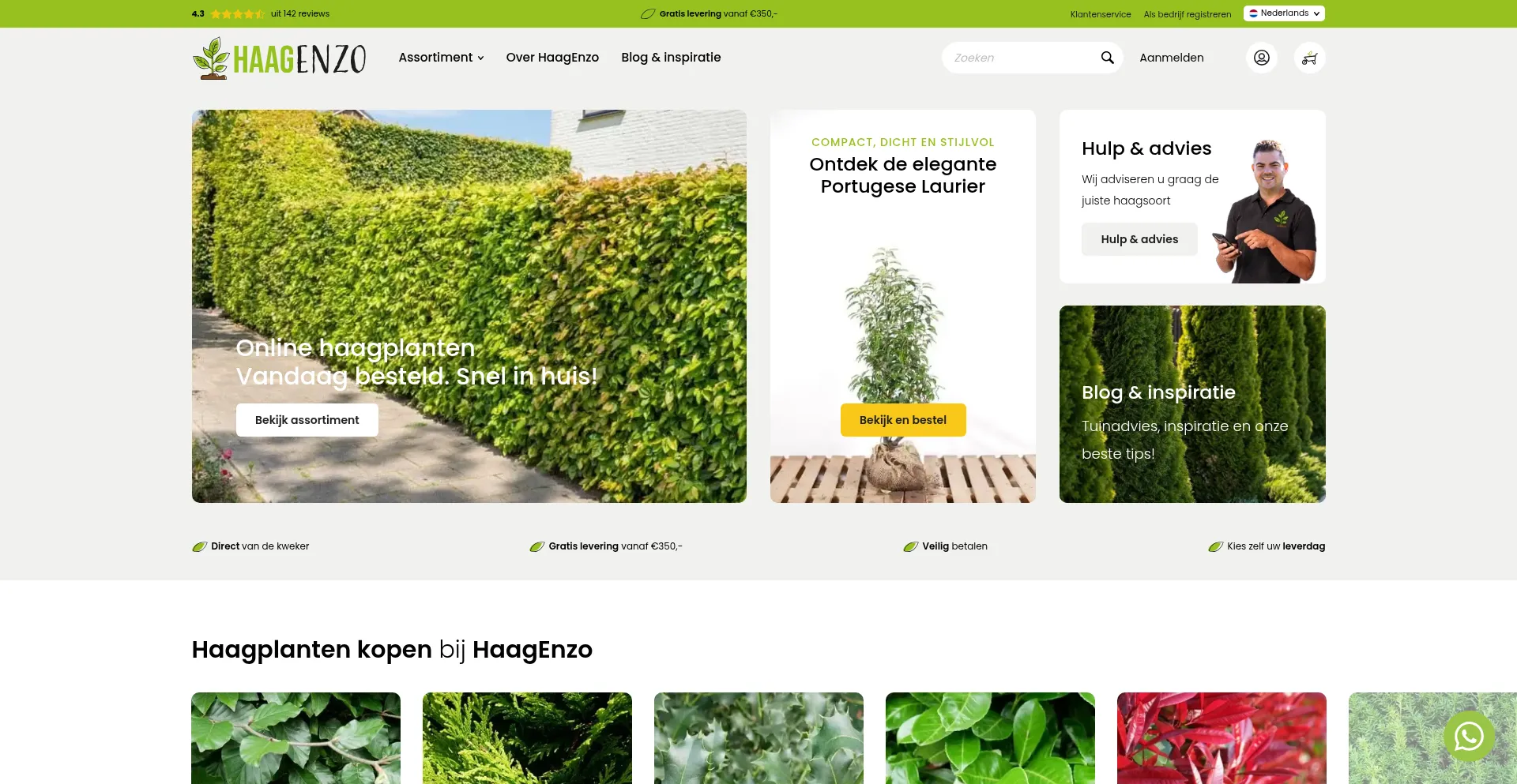 Haagplanten voor in de tuin kopen? Bij HaagEnzo bestelt u alle type haagplanten bij de Kweker ✓ Eigen kwekerij ✓ Snelle levering