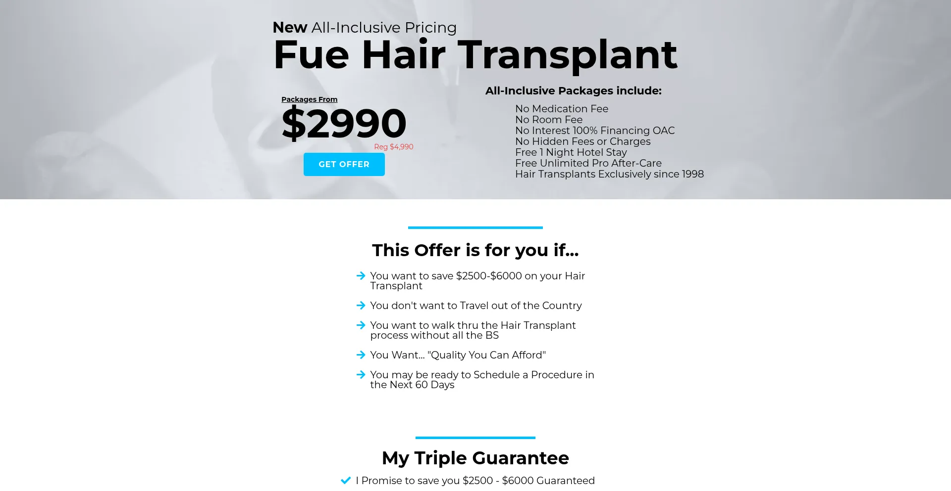 Get natural-looking, permanent hair restoration at an affordable price. MyHairMD by HairLossFixMD offers FUE hair transplants starting at $2,990, performed by experienced doctor...