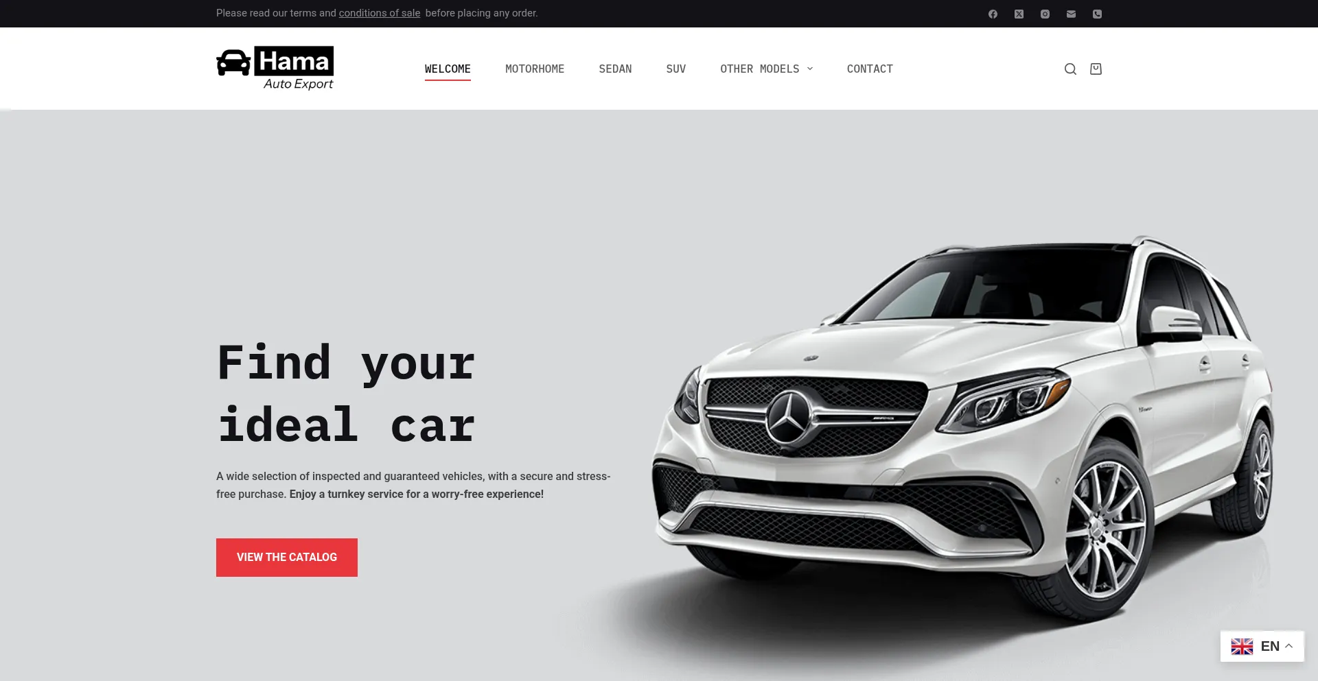 分析表明 hama-auto-export.com 作为电子商务平台运营,促进商品或服务的在线交易。该网站实现了购物车功能、支付处理系统和产品目录功能,这些是商业零售运营的典型特征。
