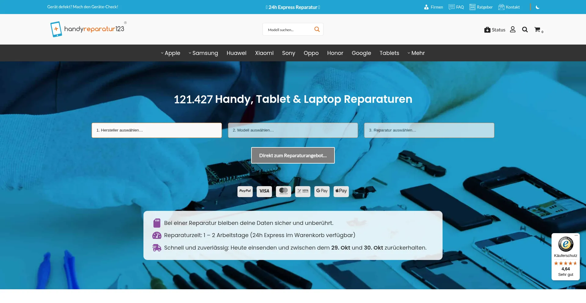 Express Handy & Tablet Reparatur ✚ 121.427 Reparaturen ✓ 4facher n-tv Fairness-Preis ⭐Gewinner ✓ Datenerhalt ➤ Zur Handy Reparatur