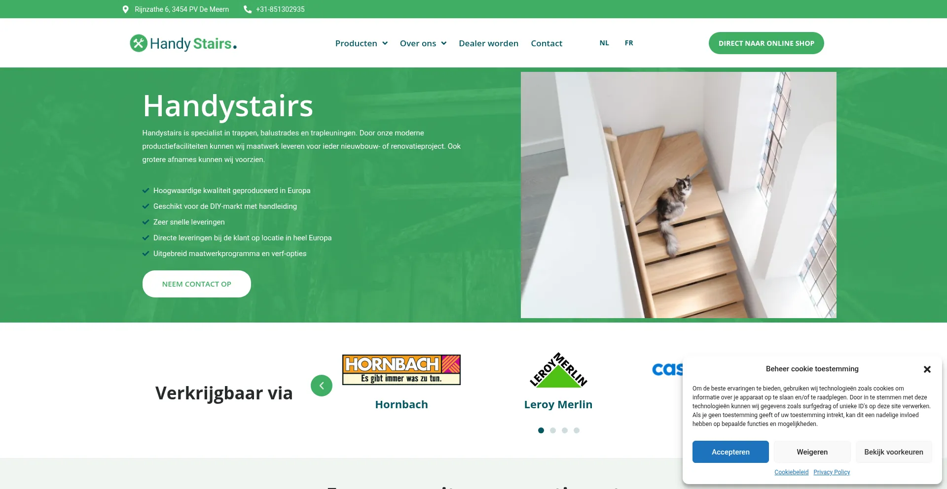 网站 handystairs.nl 被配置为一个带有移动应用功能的网络应用。用户可以直接将该网站安装到设备的桌面上,以快速访问并享受类似移动应用的体验。