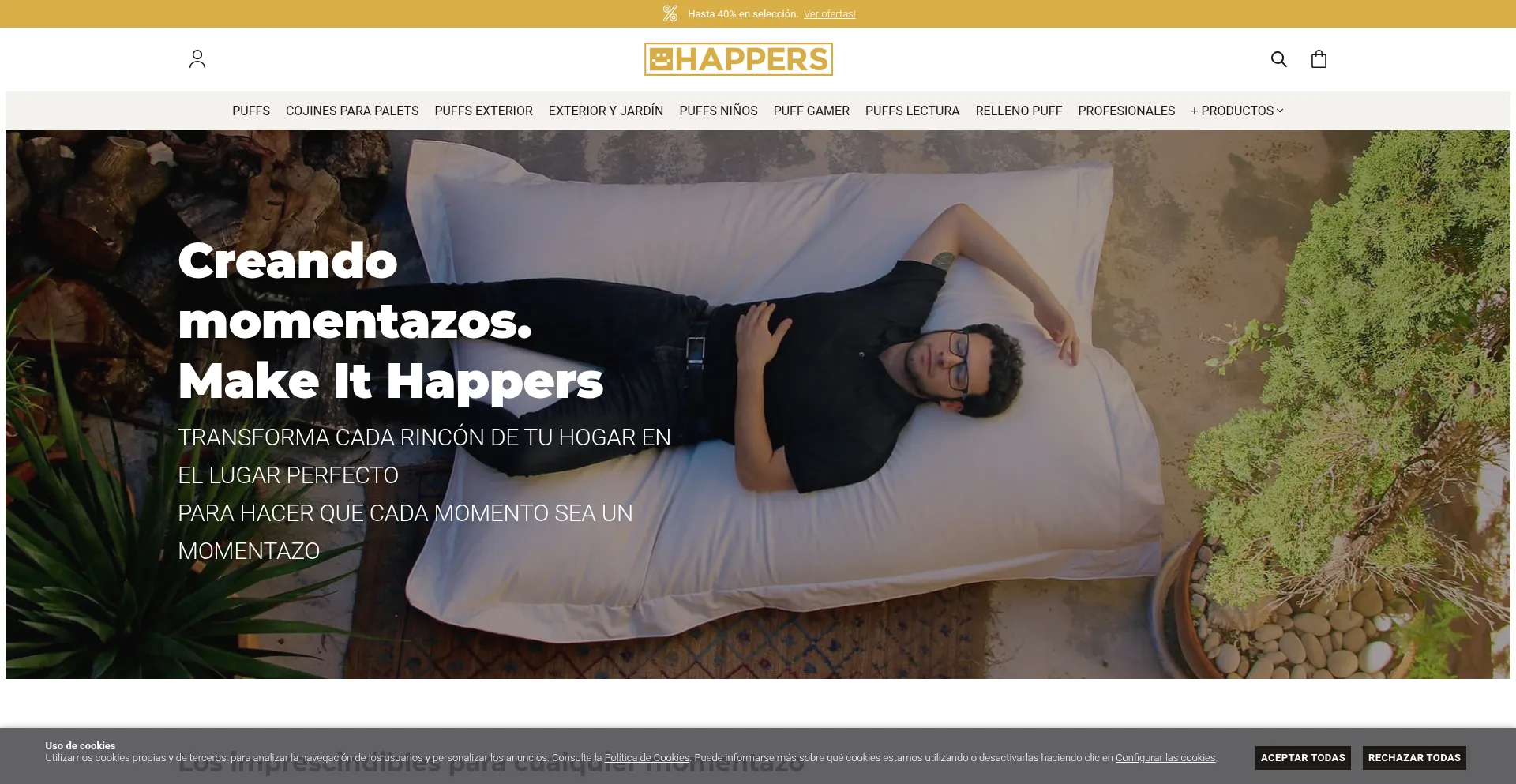 Descubre Happers: Productos diseñados para disfrutar. Diseño de calidad de puffs, muebles de exterior e interior. MAKE IT HAPPERS