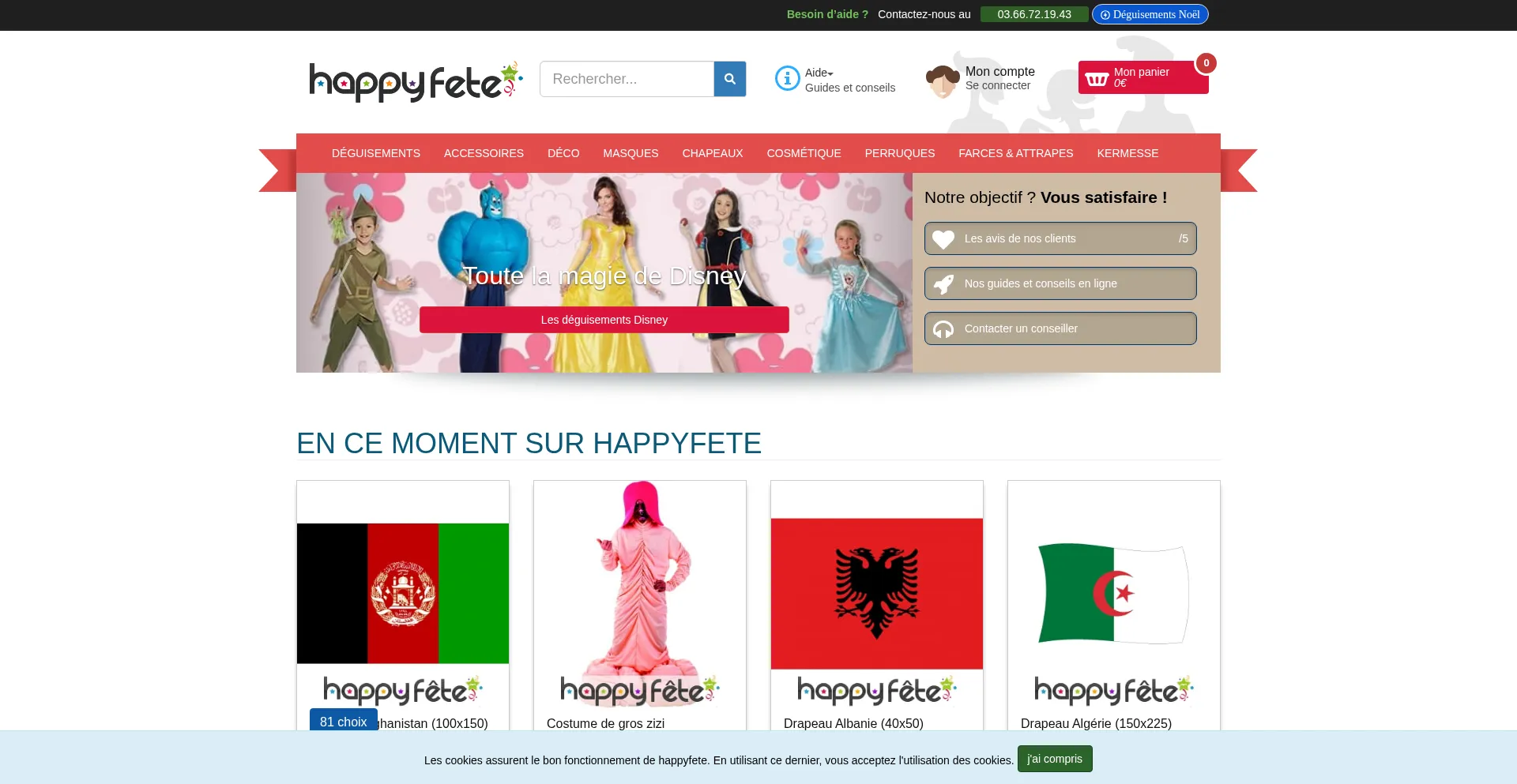 Happyfete, site de vente en ligne de déguisements, d'accessoires. Halloween, un mariage ou un anniversaire, vaste choix de décorations et articles de qualité