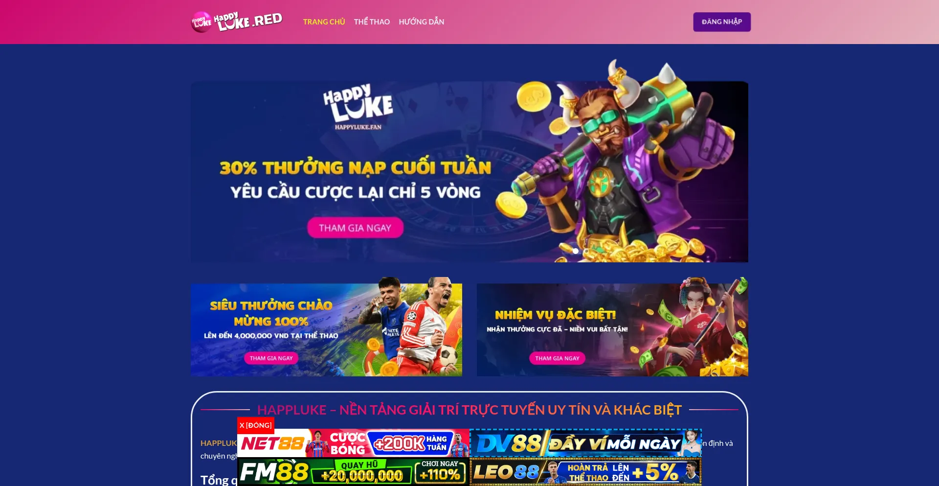 Khám phá HappyLuke – nhà cái cá cược trực tuyến uy tín hàng đầu châu Á. Hơn 3.000 trò chơi hấp dẫn, thưởng chào mừng 88K, nạp rút siêu tố...