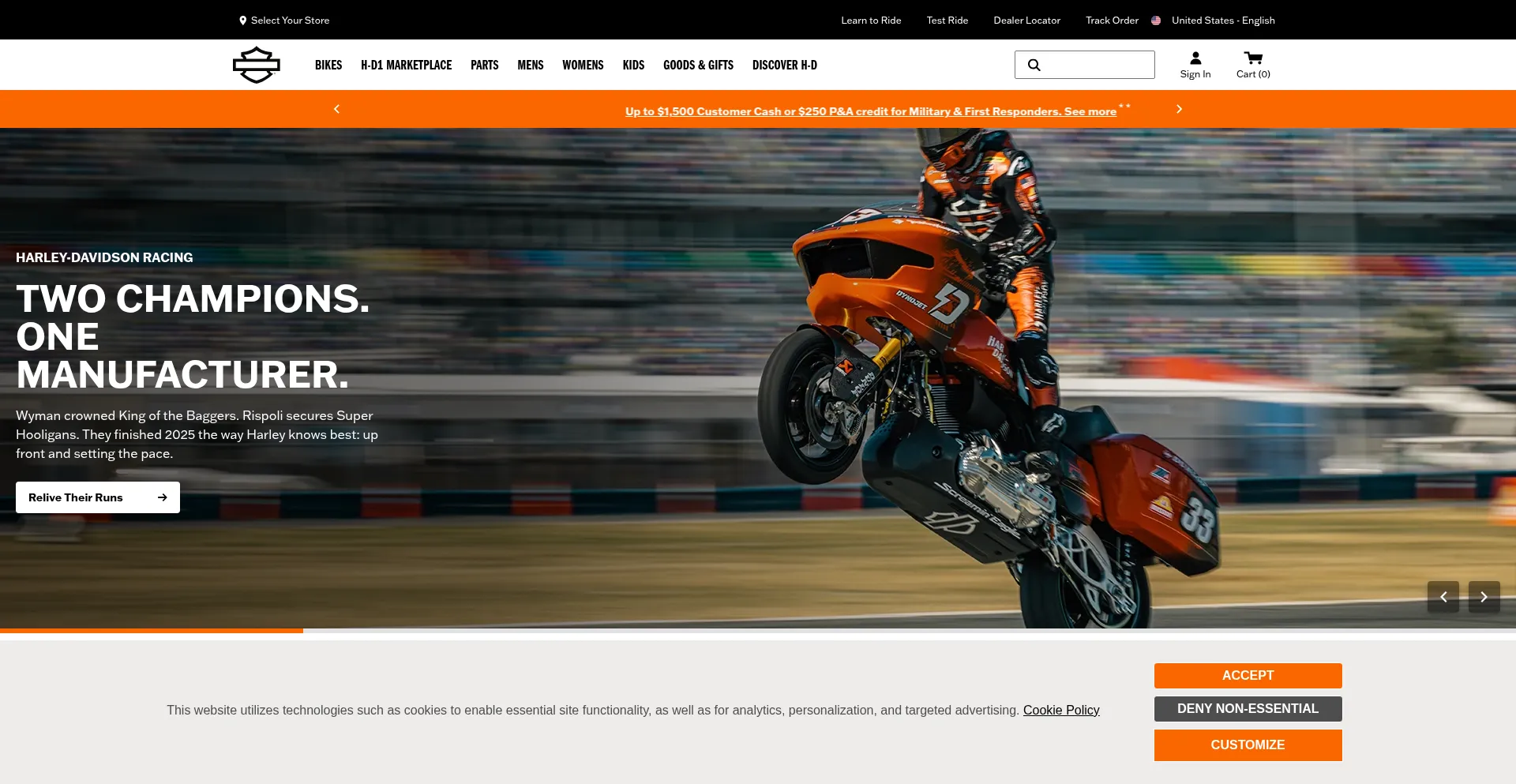 该网站实现符合GDPR或CCPA等隐私法规的cookie同意机制。这表明 harley-davidson.com 遵守数据保护标准并为用户提供对个人数据收集实践的控制。