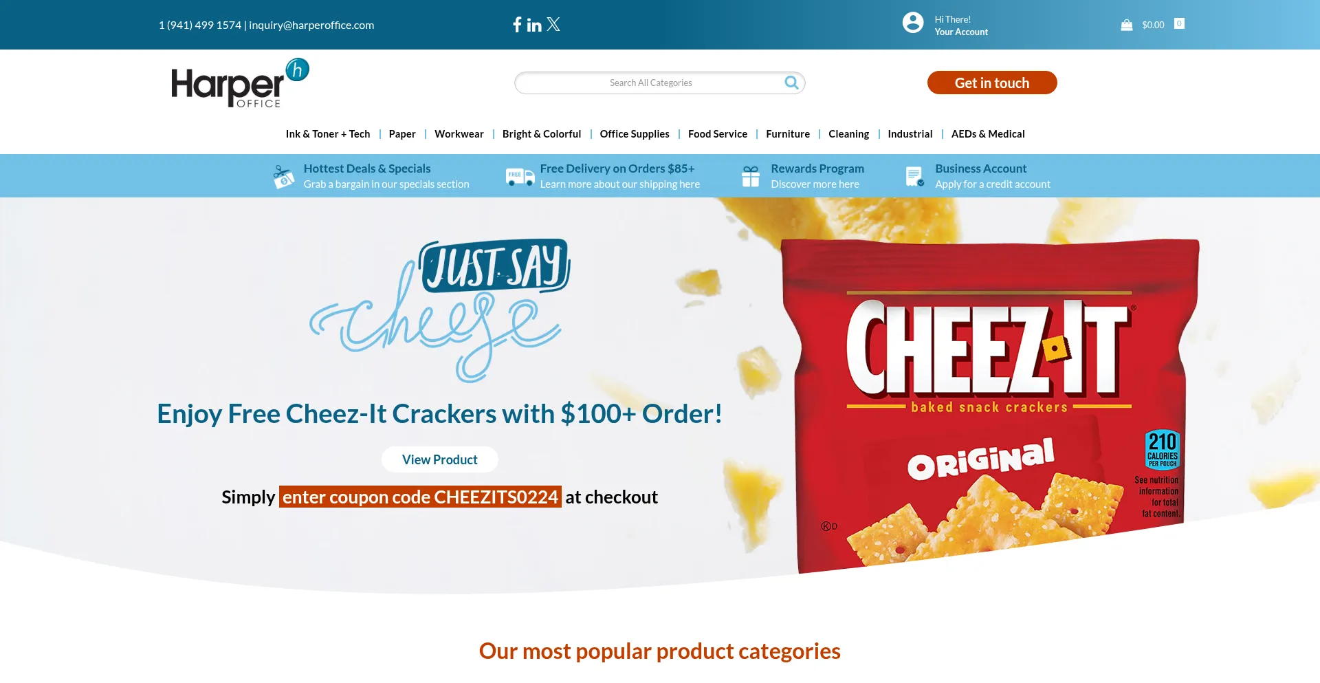 分析表明 harperoffice.com 作为电子商务平台运营,促进商品或服务的在线交易。该网站实现了购物车功能、支付处理系统和产品目录功能,这些是商业零售运营的典型特征。