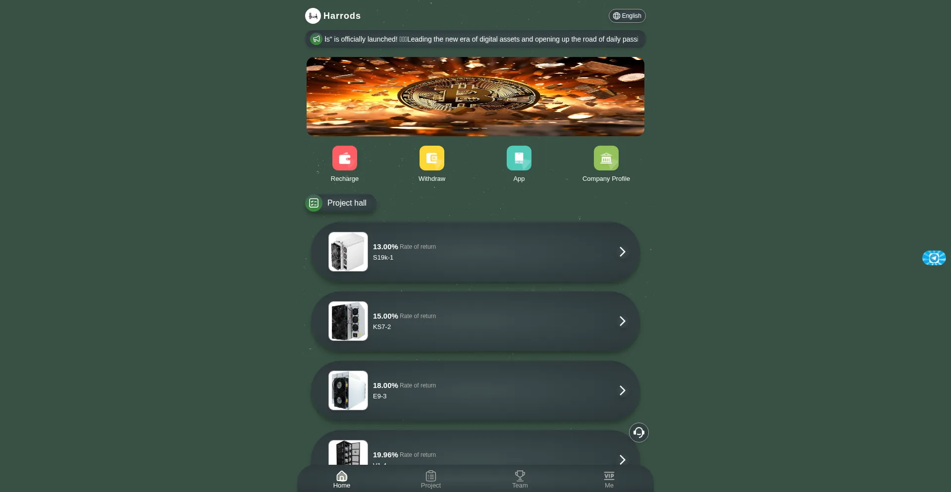 Harrodsmining.vip 运营欺诈性金融平台,推广具有不现实回报承诺的欺骗性投资机会。安全分析表明该平台采用与 庞氏骗局 和预付费欺诈一致的策略,旨在提取用户资金和个人信息。