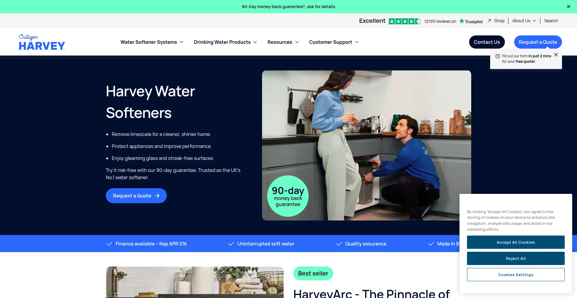 该网站实现符合GDPR或CCPA等隐私法规的cookie同意机制。这表明 harveywatersofteners.co.uk 遵守数据保护标准并为用户提供对个人数据收集实践的控制。