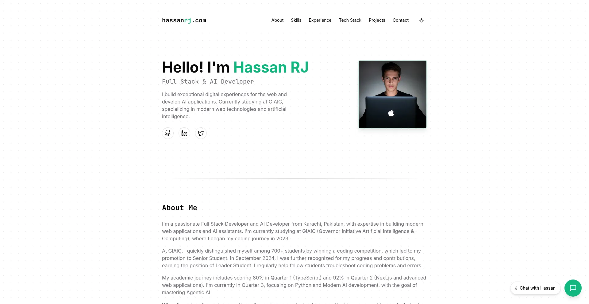 网站构建似乎使用快速部署工具或网站构建器,表明 hassanrj.vercel.app 可能代表最小投资项目或实验性企业。虽然这本身并不成问题,但此类实现可能表明有限的长期承诺或专业开发标准。