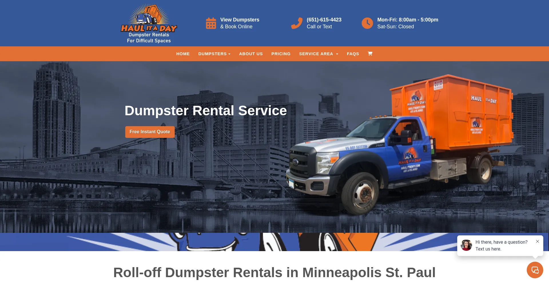 Haul It A Day offers reliable waste management in Minneapolis–Saint Paul. Book your dumpster rental today for stress-free cleanup. Enjoy affordable and dependable service!