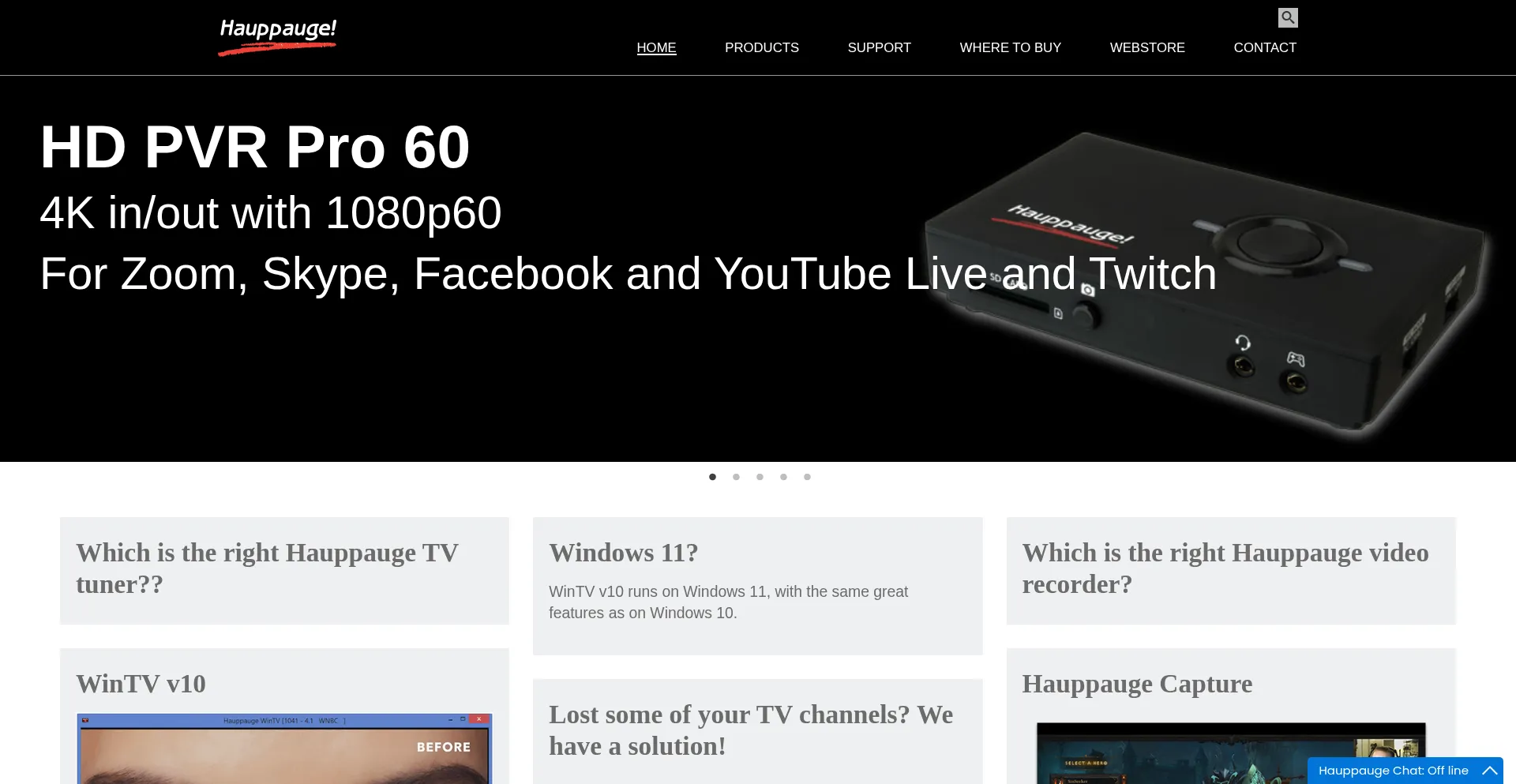 网站上存在社交媒体链接表明 hauppauge.com 在社交媒体上维护官方账户,这是可信度和参与度的积极信号。
