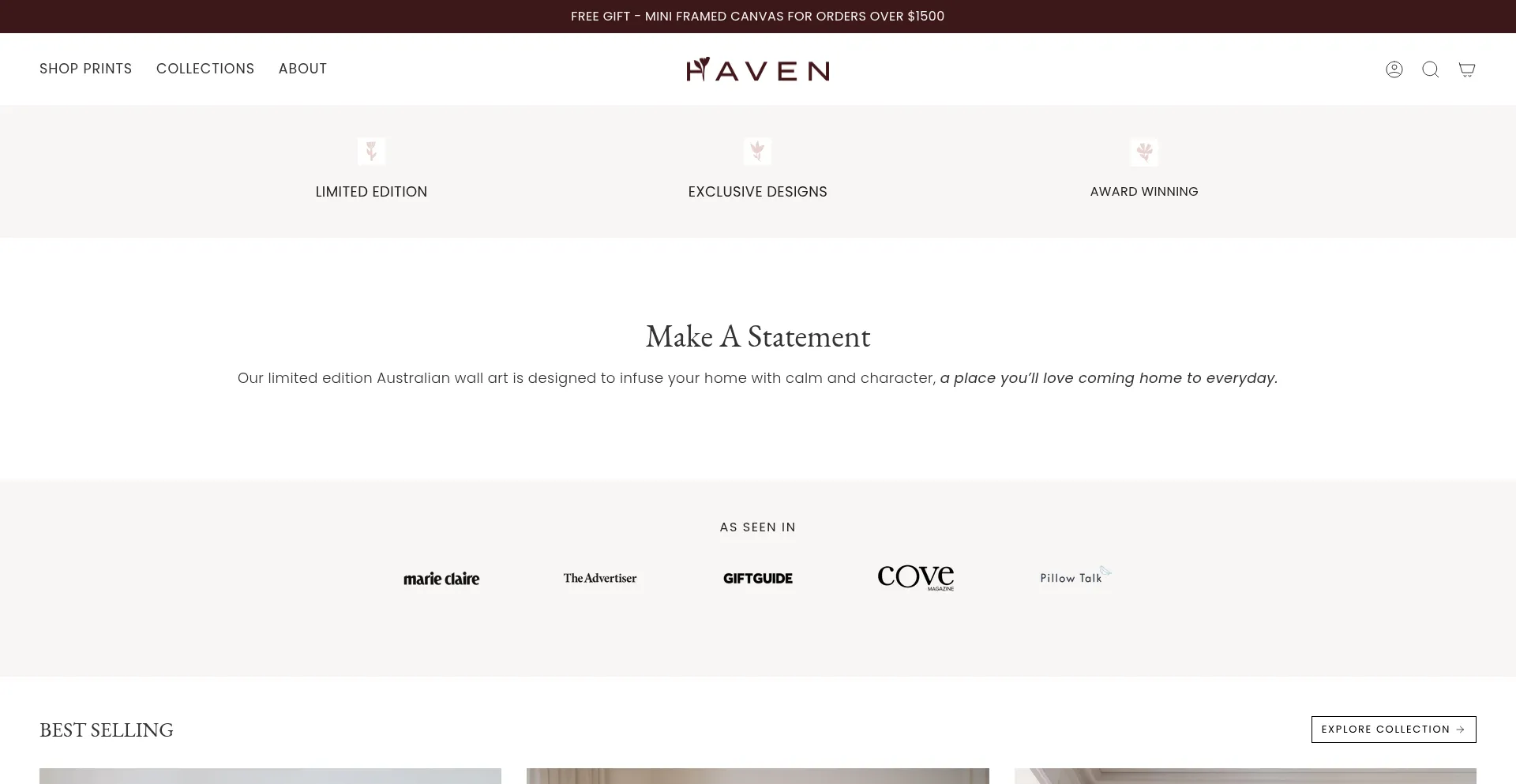 Welcome to Haven Prints, your destination for Australian wall art that makes your home feel like a sanctuary. We transform your living space into a haven of calm and inspiration.
