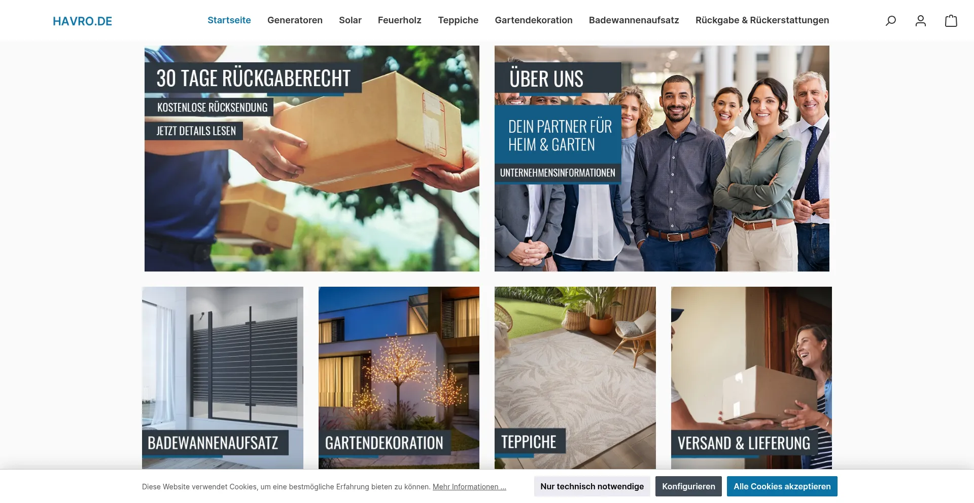 分析表明 havro.de 作为电子商务平台运营,促进商品或服务的在线交易。该网站实现了购物车功能、支付处理系统和产品目录功能,这些是商业零售运营的典型特征。