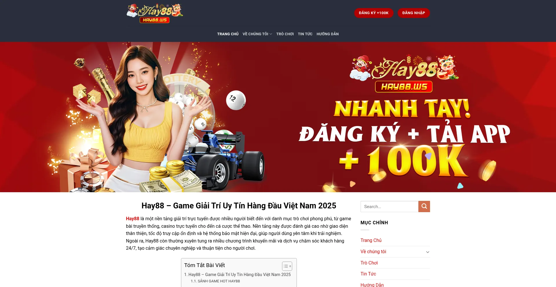 Hay88 là một nền tảng giải trí trực tuyến được nhiều người biết đến với danh mục trò chơi phong phú, từ game bài truyền thống, casino t...