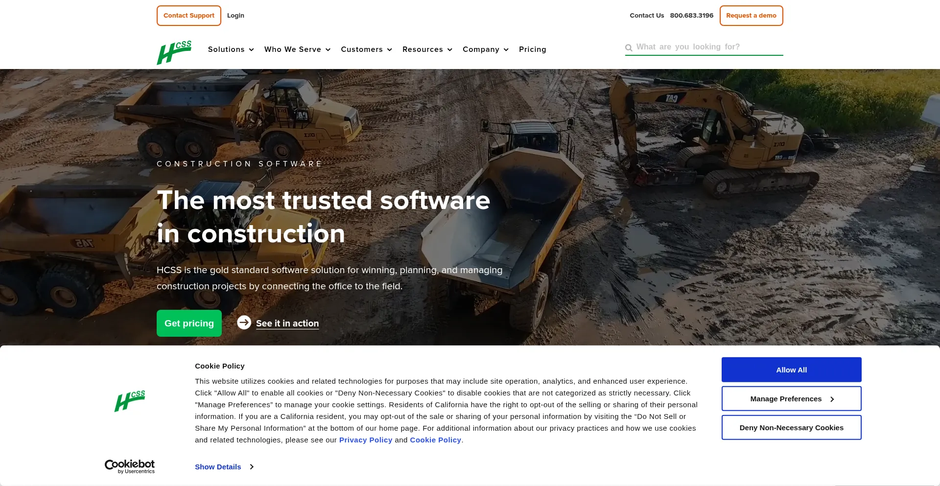 该网站实现符合GDPR或CCPA等隐私法规的cookie同意机制。这表明 hcss.com 遵守数据保护标准并为用户提供对个人数据收集实践的控制。