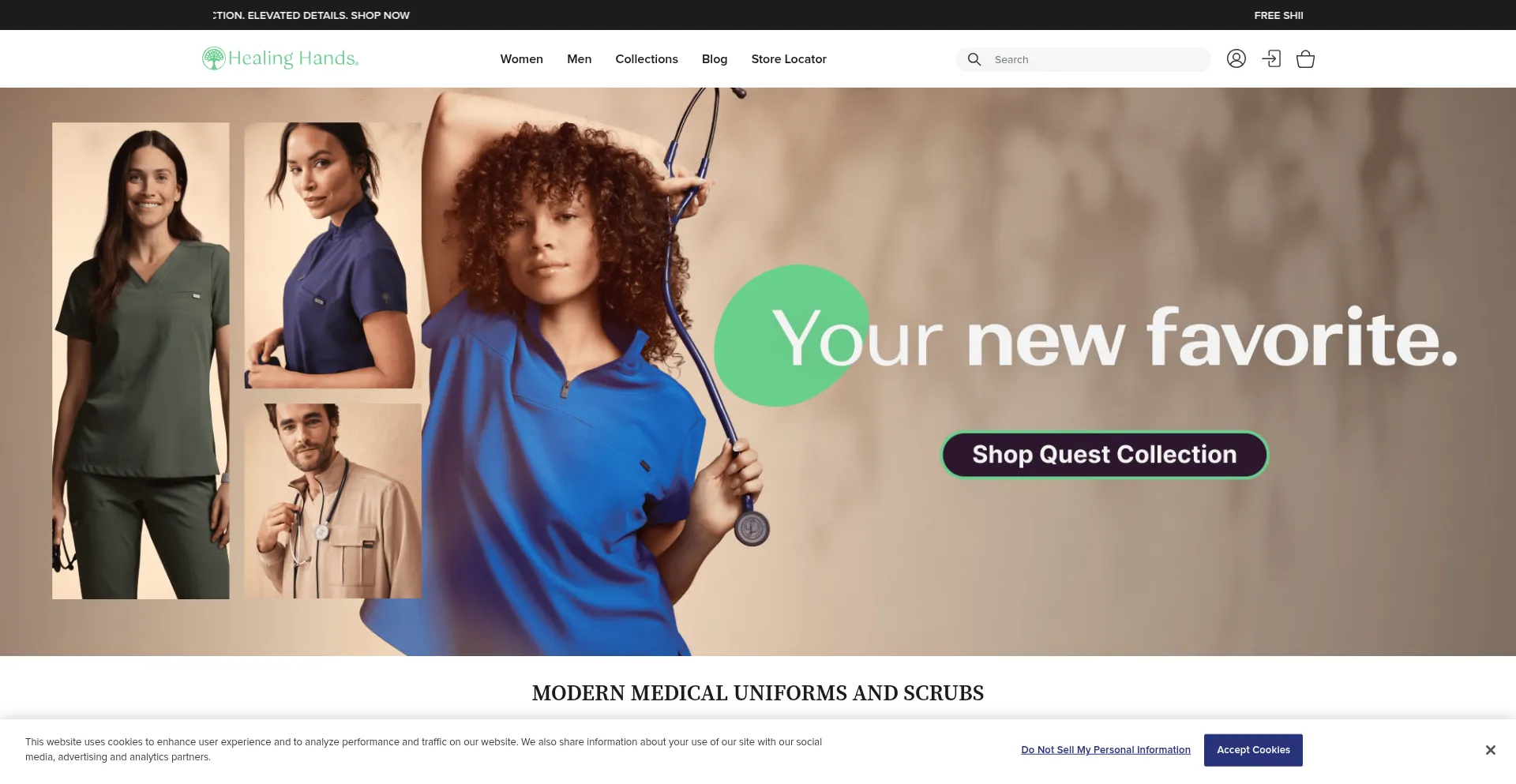 该网站实现符合GDPR或CCPA等隐私法规的cookie同意机制。这表明 healinghandsscrubs.com 遵守数据保护标准并为用户提供对个人数据收集实践的控制。