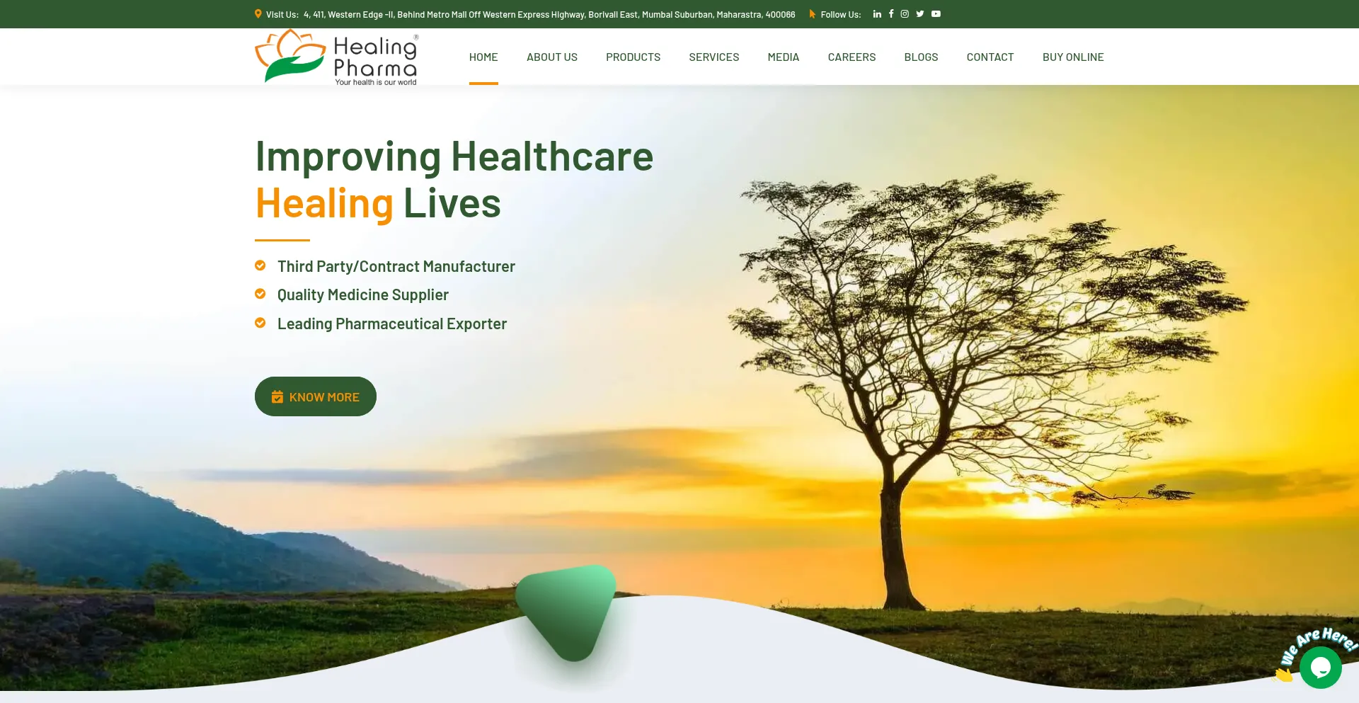 网站上存在社交媒体链接表明 healingpharma.in 在社交媒体上维护官方账户,这是可信度和参与度的积极信号。