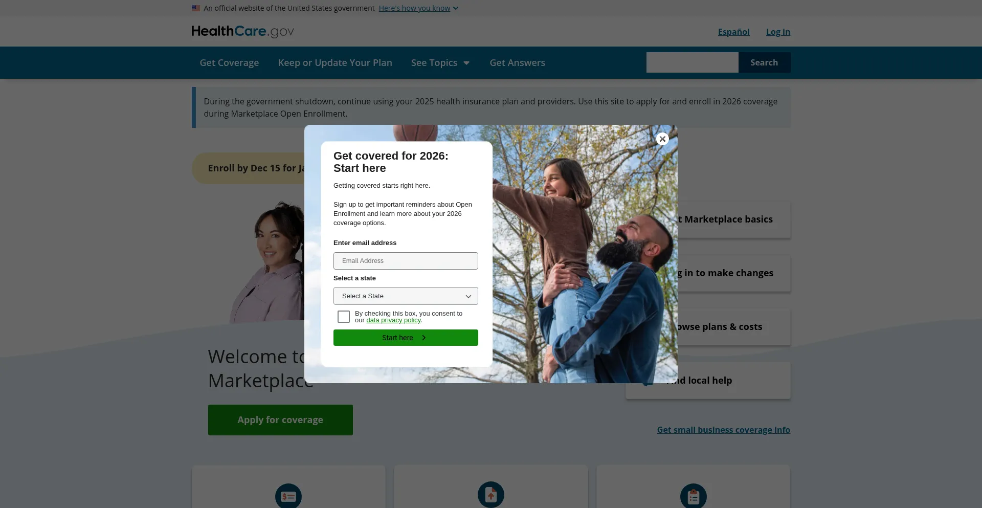 Welcome to the Health Insurance Marketplace®. Official government website.