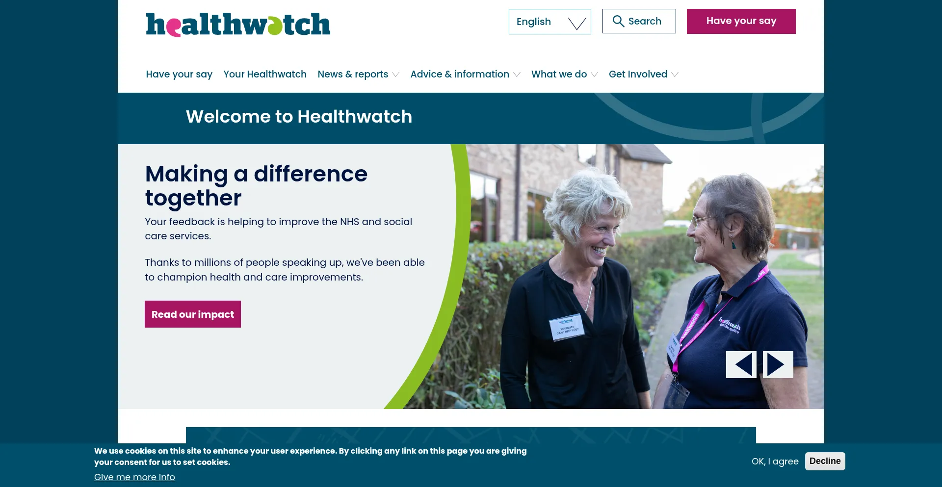该网站实现符合GDPR或CCPA等隐私法规的cookie同意机制。这表明 healthwatch.co.uk 遵守数据保护标准并为用户提供对个人数据收集实践的控制。