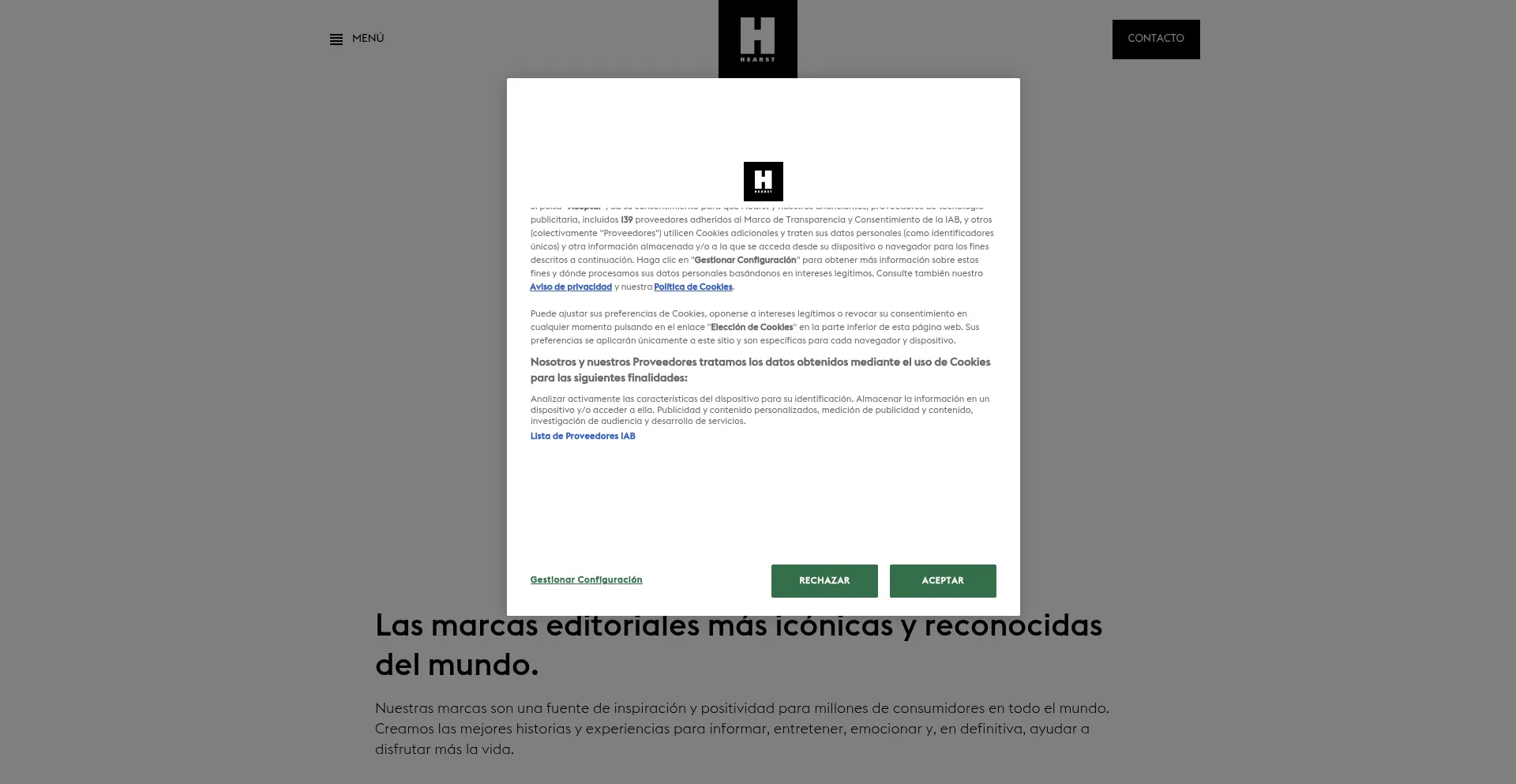 该网站实现符合GDPR或CCPA等隐私法规的cookie同意机制。这表明 hearst.es 遵守数据保护标准并为用户提供对个人数据收集实践的控制。